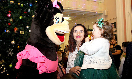 У большой новогодней елки ребята и их родители встретились с Дедом Морозом, Снегурочкой и другими сказочными персонажами, весело водили хороводы, танцевали и хлопали в ладоши, участвовали в веселых конкурсах, викторинах и играх. Примечательно, что многие из присутствующих пришли сюда семьями.