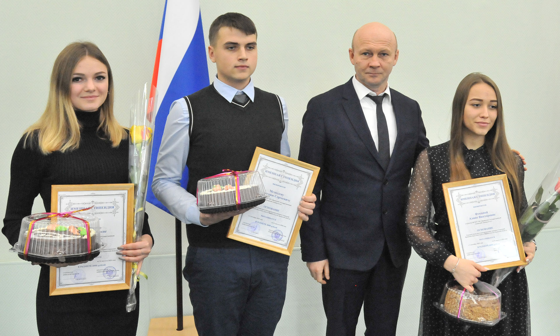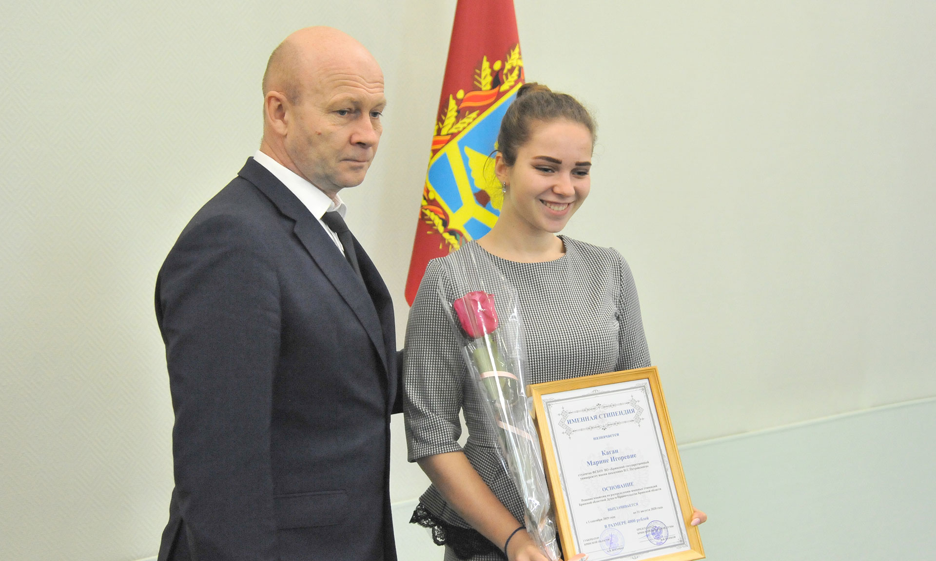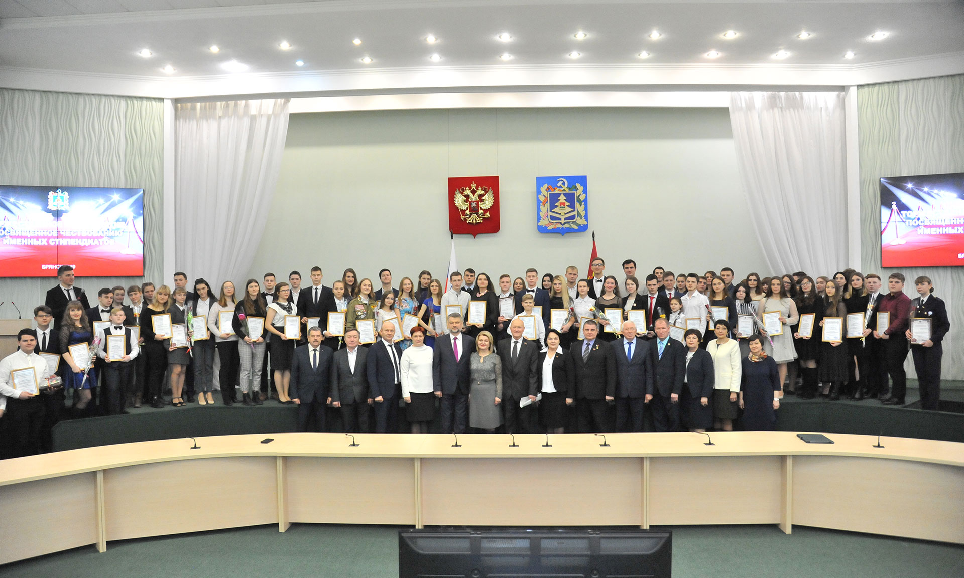 24 декабря в Правительстве Брянской области состоялась торжественная церемония чествования именных стипендиатов Брянской областной Думы и Правительства Брянской области, обладателей стипендии Правительства Брянской области имени П. Л. Проскурина и премии Губернатора Брянской области.