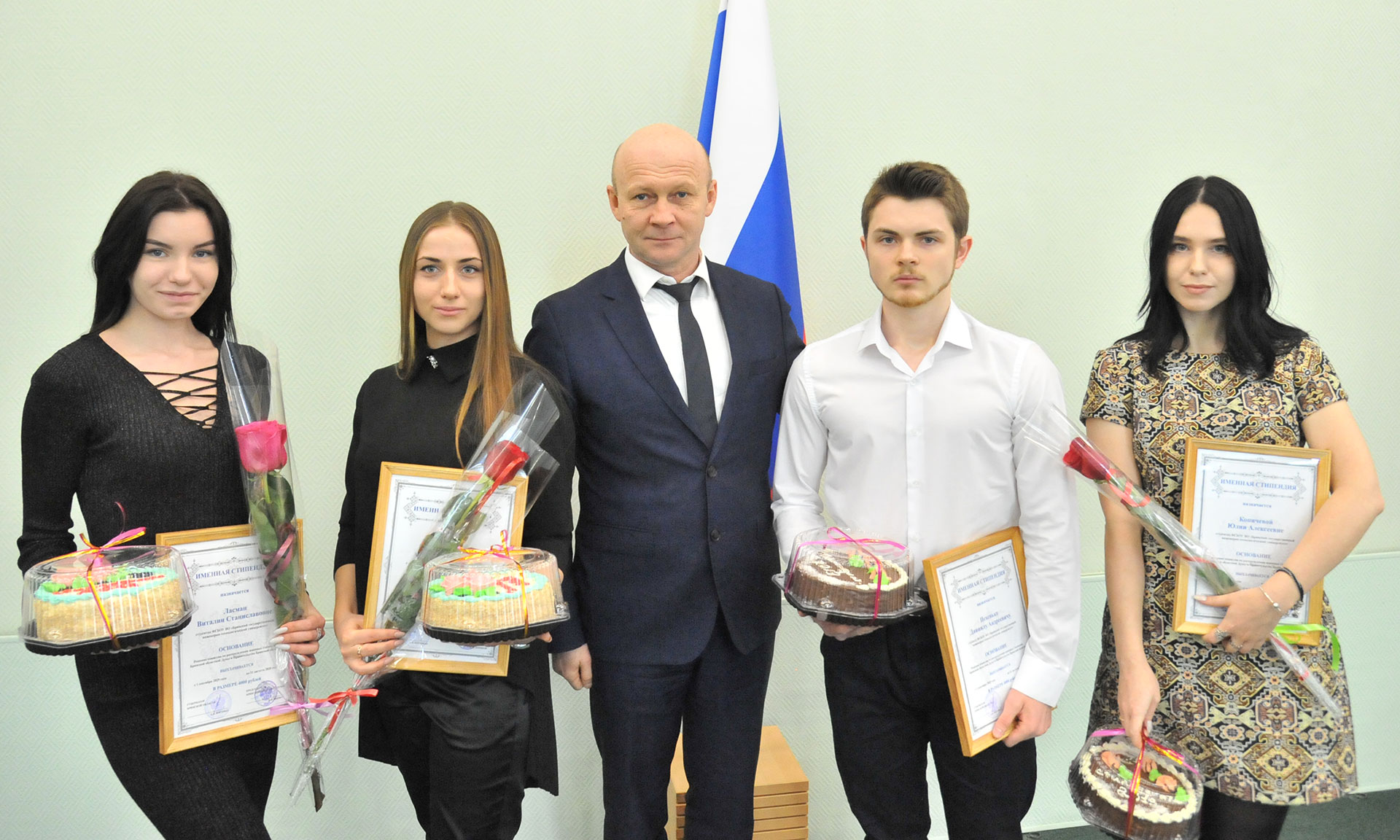 В торжественной обстановке стипендиатам вручали не только свидетельства, но и приятные сувениры и сладкие подарки.