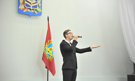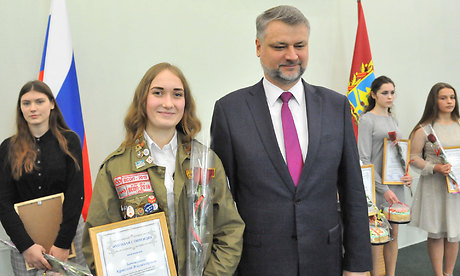 — Добрый день, дорогие друзья! От лица полномочного представителя Президента России в Центральном федеральном округе Игоря Олеговича Щёголева хочу поприветствовать лучших студентов Брянщины собравшихся сегодня в этом зале.