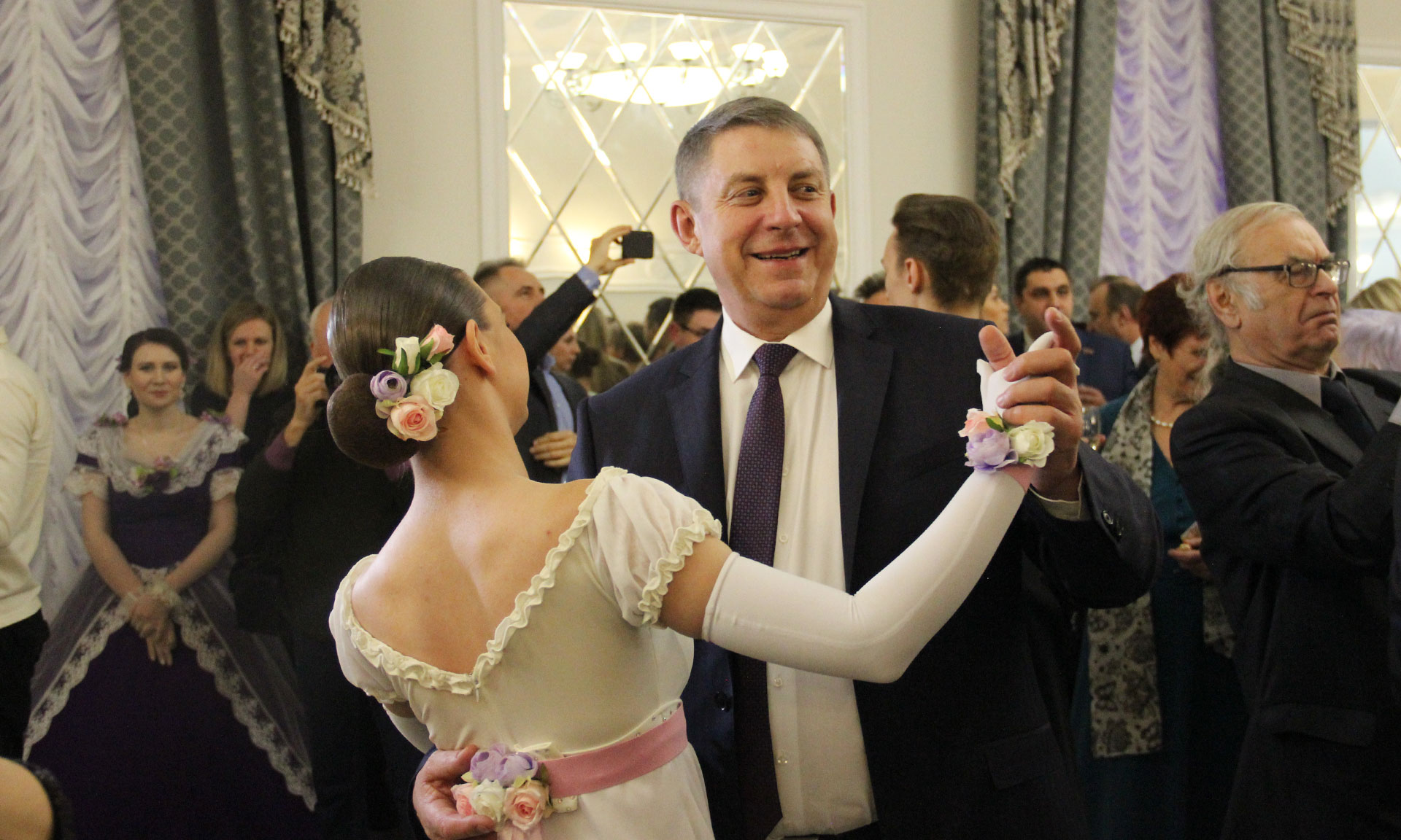 После прозвучавших поздравлений участники ансамбля «Чудное мгновенье» пригласили официальных лиц и гостей вечера на праздничный вальс.