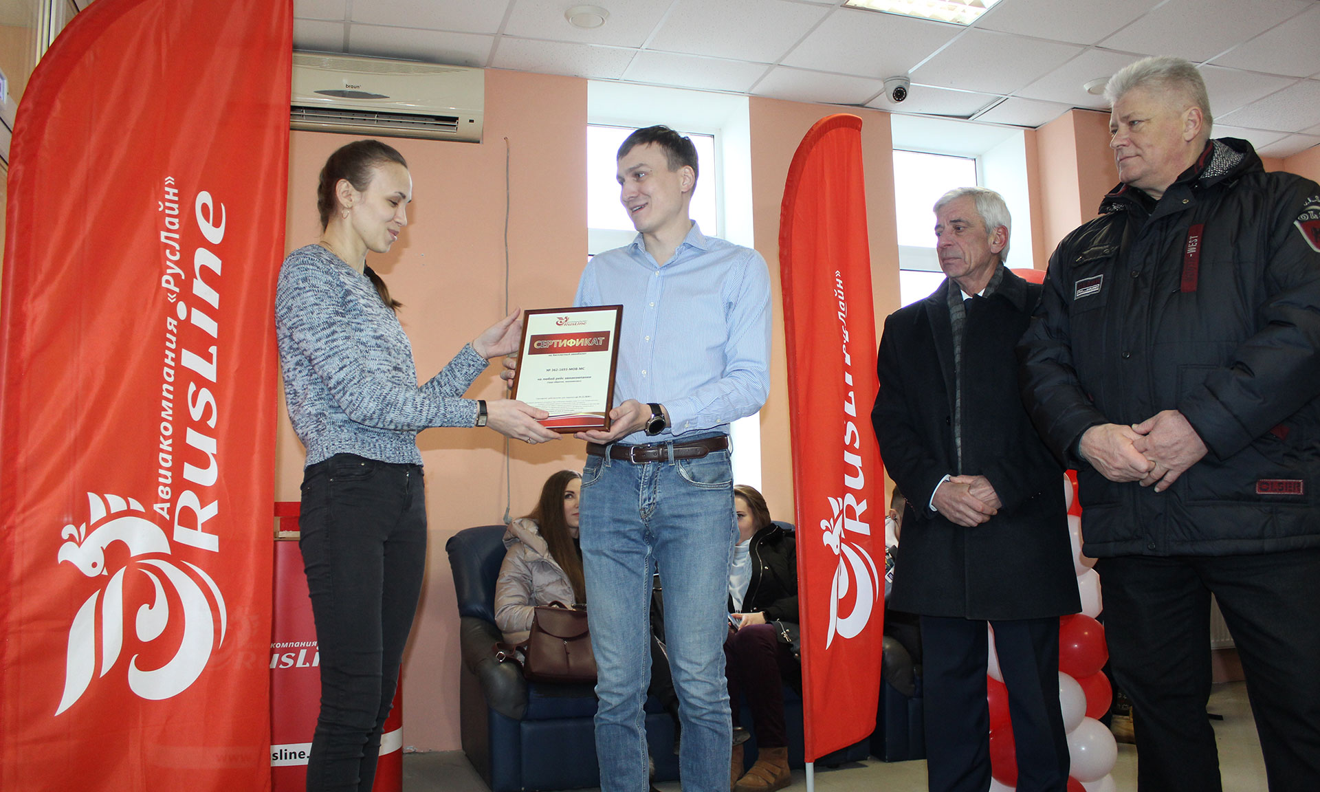Региональный представитель авиакомпании в ЦФО Станислав Султанбеков вручил сертификат на бесплатный авиаперелет первому пассажиру на казанском направлении Татьяне Наумовой, первой купившей билет. Сертификат действителен на любой рейс авиакомпании в течение года. Татьяна родом из Казани, в Брянске живут ее родственники. Теперь женщина может добраться до родного города без пересадок, что для нее удобно и комфортно. До открытия рейса ей нужно было ехать в Москву, откуда приходилось добираться до дома с пересадками, что занимало до 15 часов.