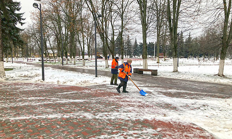 Дорожники вывозят снег с проезжей части, остановочных комплексов, парков, скверов. На ручной расчистке города задействованы более 150 человек. Они убирают снег в труднодоступных местах — пешеходных дорожках, тротуарах. В помощь им используются вакуумные коммунальные машины и несколько малогабаритных тракторов.