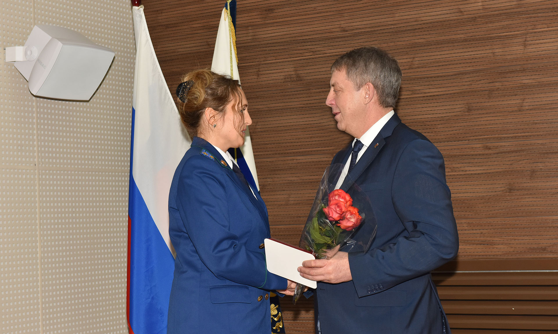 Прокурор области Александр Войтович огласил ряд поздравительных телеграмм, поступивших в его адрес, в том числе поздравление Генерального прокурора Российской Федерации Юрия Чайки с Днем работника прокуратуры: