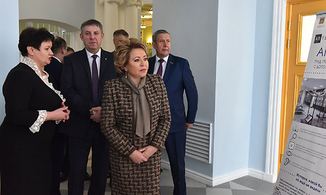 Спикер верхней палаты парламента Валентина Матвиенко посетила Дворец культуры БМЗ Брянского областного методического центра «Народное творчество», реконструируемого в рамках национального проекта «Культура».