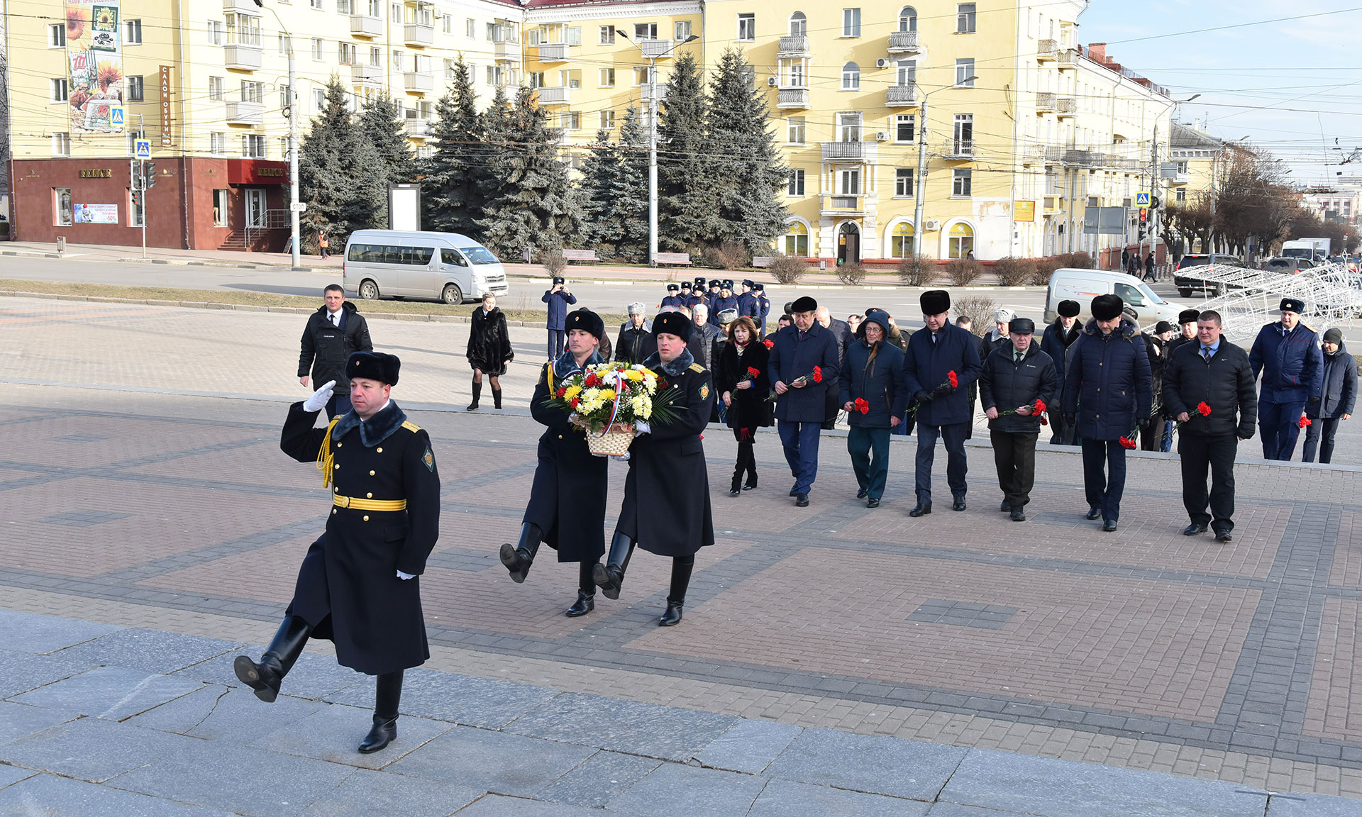 В церемонии возложения цветов приняли участие Губернатор Брянской области Александр Богомаз, председатель Брянской областной Думы Владимир Попков, главный федеральный инспектор по Брянской области Андрей Дьячук, Герой Советского Союза Иван Кашин, Герой Советского Союза Виктор Афанасьев, Герой России Александр Постоялко, член Совета Федерации Галина Солодун, председатель Брянского областного суда Евгений Быков, прокурор Брянской области Александр Войтович, руководители органов исполнительной и законодательной власти области, руководители города Брянска, руководители силовых структур региона, заместители Губернатора Брянской области.