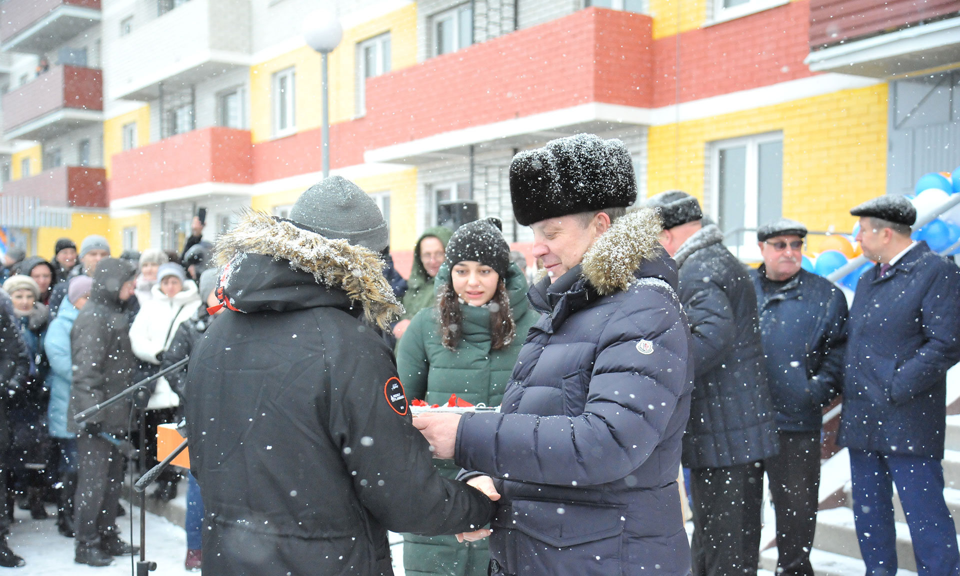 — Дорогие наши жители! Власть сегодня думает о людях. Ваш дом возводился непросто, возникали определенные проблемы с застройщиком. То, что все они были решены в кратчайшие сроки, — результат серьезной работы Губернатора, прокуратуры, областная Дума подкрепила это соответствующими законами.