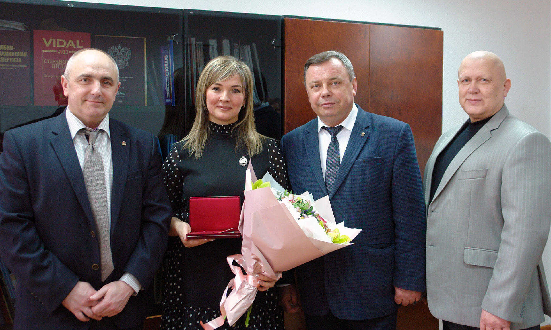 14 февраля заместитель Губернатора Брянской области Владимир Оборотов поздравил заведующую судебно-химическим отделением Брянского областного бюро судебно-медицинской экспертизы Елену Воскобойникову с присвоением почетного звания «Заслуженный врач Российской Федерации».