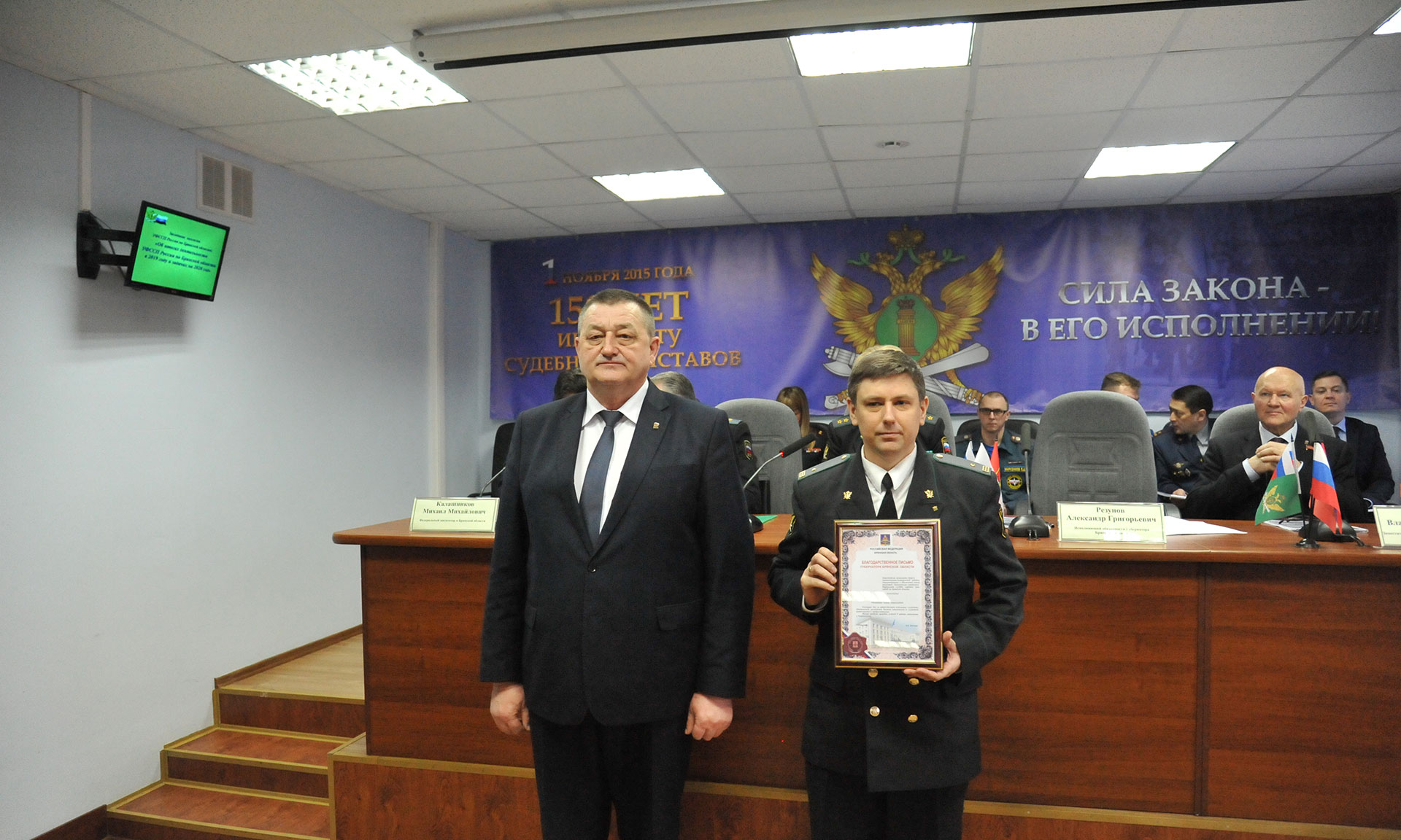 В мероприятии приняли участие советник директора Федеральной службы судебных приставов России Анатолий Кравченко, заместитель председателя Брянской областной Думы Владимир Пронин, федеральный инспектор по Брянской области Михаил Калашников, председатель Брянского областного суда Евгений Быков, руководители силовых структур, федеральных служб и ведомств Брянской области.