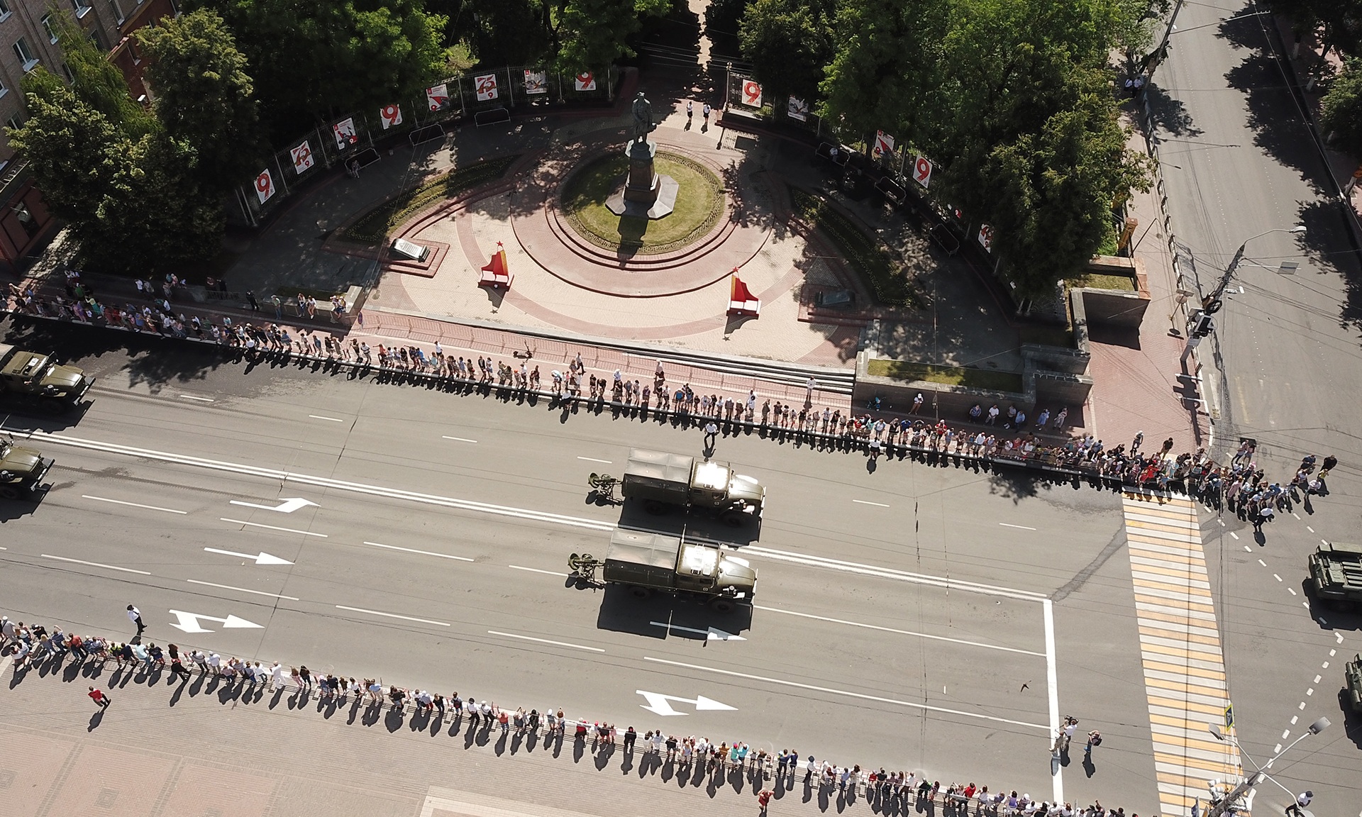 — Дорогие ветераны, товарищи военные и представители силовых ведомств! Уважаемые земляки! Поздравляю вас с 75-й годовщиной Победы в Великой Отечественной войне! В Год памяти и славы торжественный марш парадных расчетов проходит, как и 75 лет назад, 24 июня.