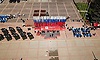 Под музыку песни композитора Александрова «Священная война» на площадь внесены два символа России: легендарное Знамя Победы и Государственный флаг Российской Федерации.