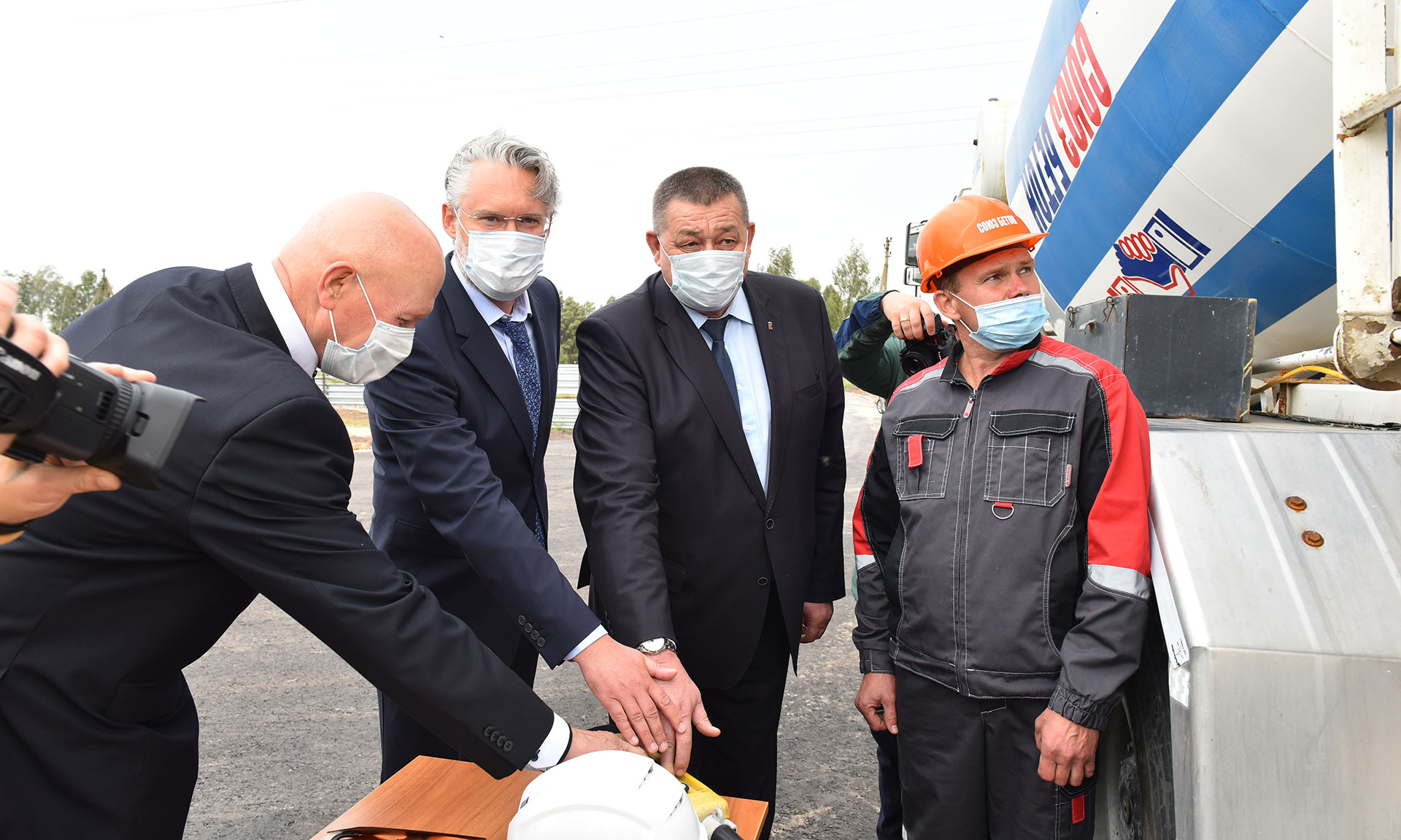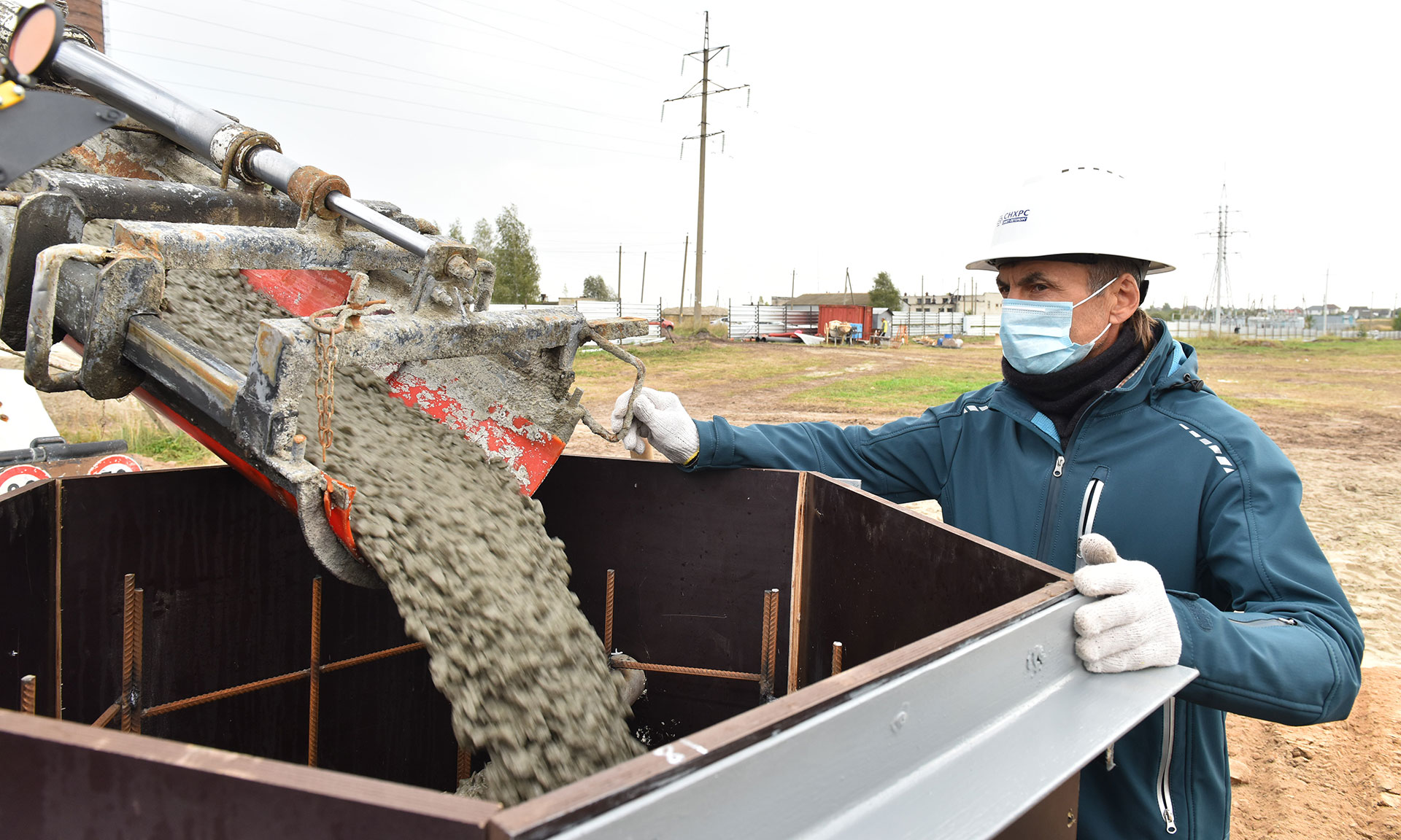 В завершении все участники мероприятия стали участниками символической заливки бетона в основание будущей стелы распределительного центра.