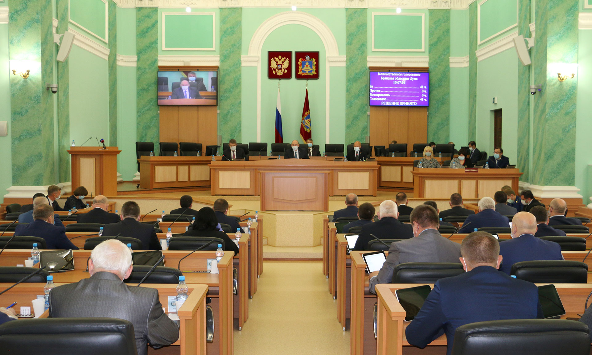 15 октября состоялось внеочередное заседание Брянской областной Думы региона. Его провел исполняющий обязанности председателя законодательного собрания региона Виталий Беляй. В заседании принял участие Губернатор Александр Богомаз.