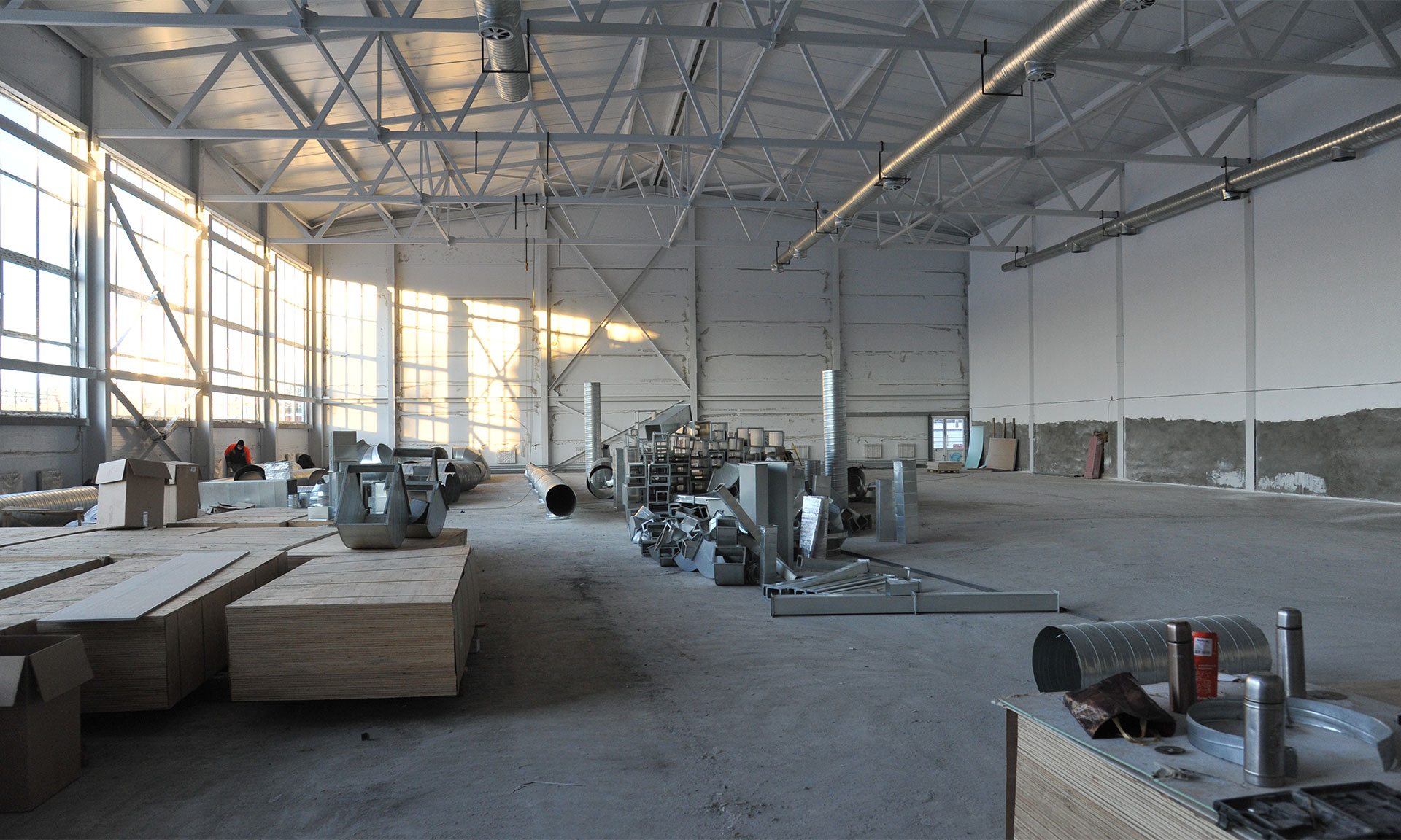 На сегодняшний день завершено возведение коробки здания с монтажом окон и витражей. Ведутся отделочные работы в здании административно-бытового корпуса. В стадии завершения монтаж отопления и вентиляции. Выполняются работы по устройству тротуаров, монтажу ограждения территории и устройству главного входа.