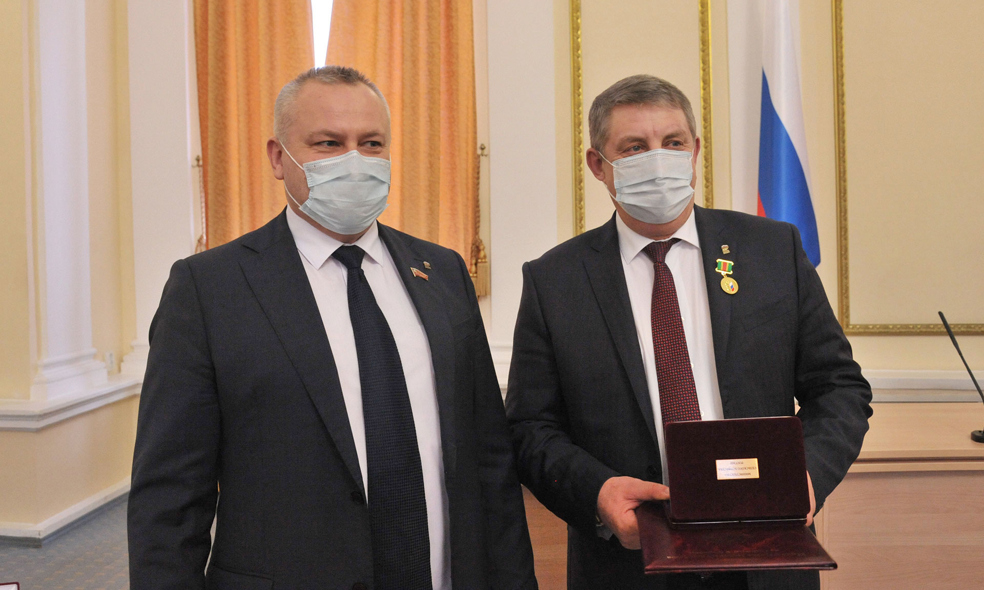 Награду главе региона вручил председатель Брянской областной Думы Валентин Суббот.