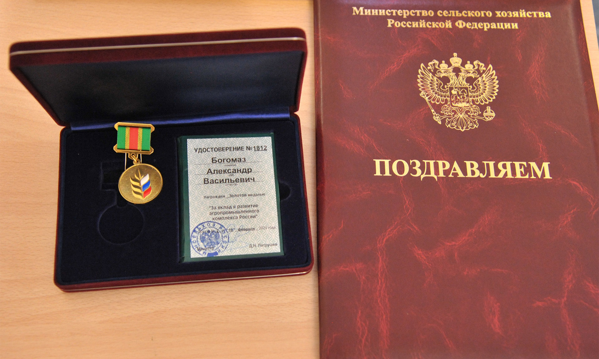 Приказом Министерства сельского хозяйства РФ от 10 февраля 2021 года № 2-НМ за заслуги в агропромышленном производстве, активную общественную работу и многолетний плодотворный труд Губернатор Брянской области Александр Богомаз награжден золотой медалью «За вклад в развитие агропромышленного комплекса России». Медаль является высшей ведомственной наградой Министерства сельского хозяйства Российской Федерации.