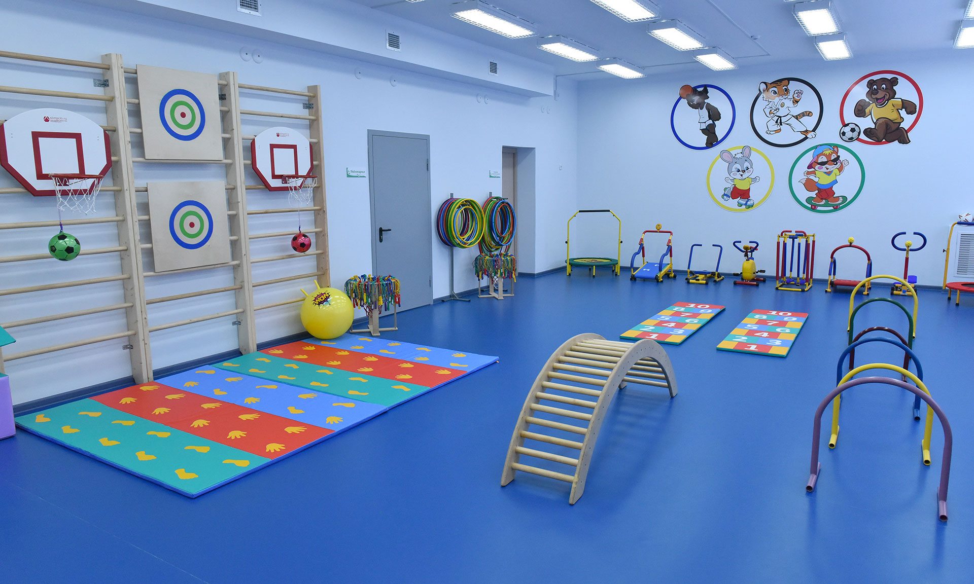 Занятия физкультурой будут проходить в физкультурном зале, оснащённом спортивным инвентарём и оборудованием, приобретены детские тренажёры. В новом садике есть бассейн.