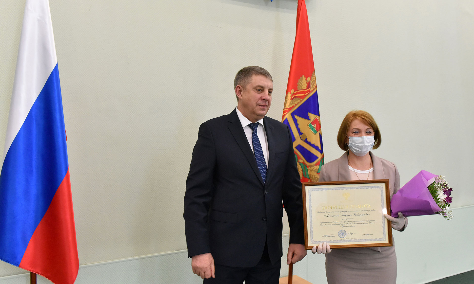 За большой вклад в развитие культуры, многолетнюю плодотворную работу Почетной грамотой Министерства культуры Российской Федерации награждены Марина Алешина — преподаватель по классу хореографии детской школы искусств имени М. П. Мусоргского города Фокино, Ирина Клеутина — директор Унечской детской школы искусств.
