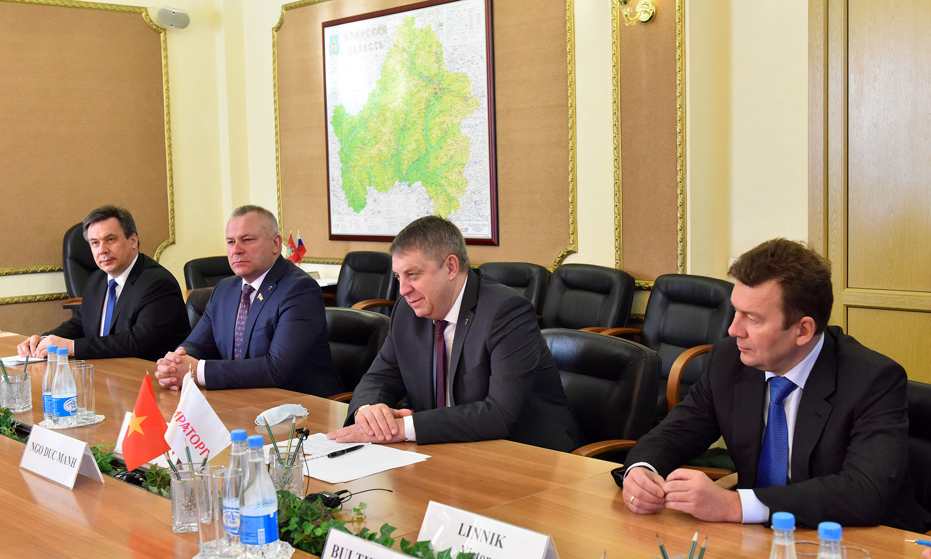 24 марта состоялась рабочая встреча Губернатора Брянской области Александра Богомаза и Чрезвычайного и Полномочного Посла Социалистической Республики Вьетнам в России Нго Дык Манем.