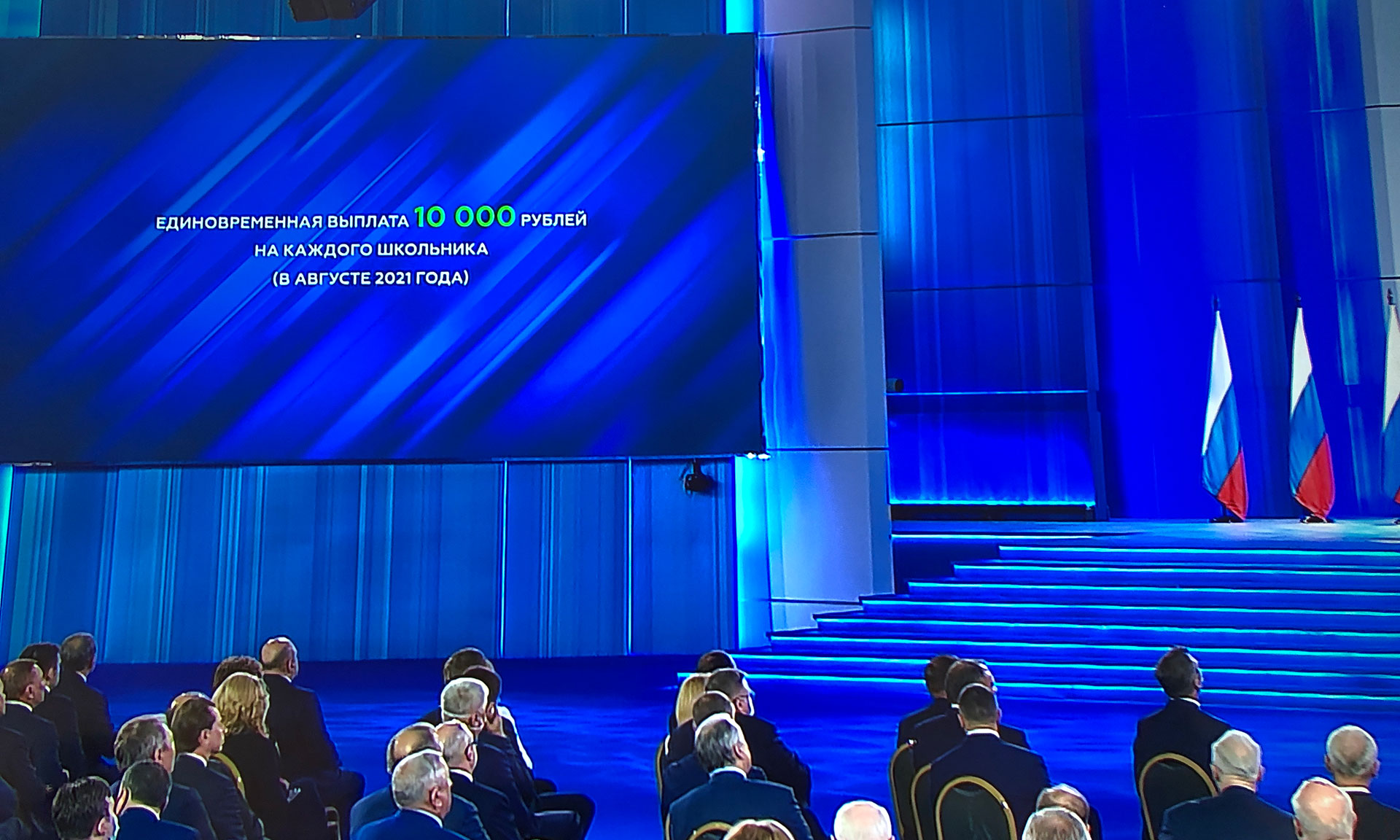 — Подчеркну, в период эпидемии все наши решения были направлены на поддержку граждан. Но понимаю, что и сейчас многим, многим непросто. Рынок труда и реальные располагаемые доходы граждан обязательно будут восстановлены, и мы дальше пойдём. Но этого ещё не произошло. И в этой связи предлагаю провести ещё одну единовременную выплату семьям, где растут дети школьного возраста, а именно: по 10 тысяч рублей на всех школьников. И более того, распространить эту меру на будущих первоклашек, на ребят, которые в этом году только пойдут учиться. Выплату проведём в середине августа, чтобы у родителей было время собрать ребёнка в школу.