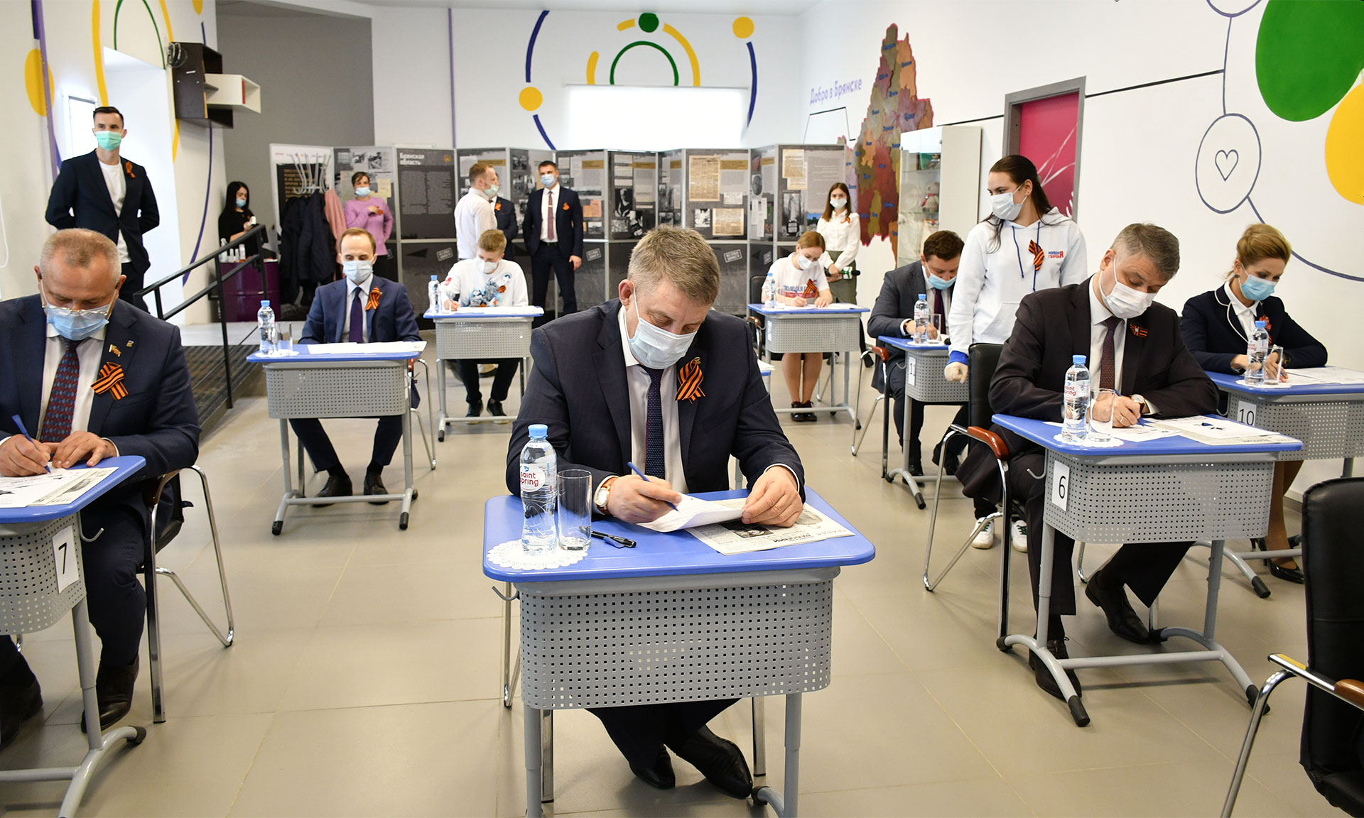 29 апреля Губернатор Брянской области Александр Богомаз принял участие во Всероссийском историческом диктанте на тему событий Великой Отечественной войны «Диктант Победы» на территории коворкинг-пространства «Дом волонтера».