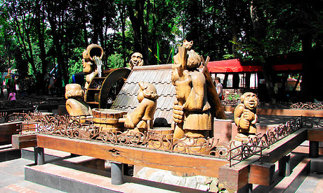 Зимой 1960 года в парке появилась первая скульптура старика-сказочника, созданная из ствола погибшего дерева. В том же году в парке был установлен первый в России бронзовый бюст, посвященный нашему земляку, писателю, поэту и драматургу А. К. Толстому. Спустя еще некоторое время жители города могли любоваться романтичной Деснянкой, смешным Емелей, лесным музыкантом и деревянным Козьмой Прутковым с его знаменитым афоризмом: «Зри в корень!».