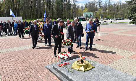 Погибших во время Великой Отечественной войны водителей почтили минутой молчания. Затем к памятнику воинам-водителям возложили цветы.