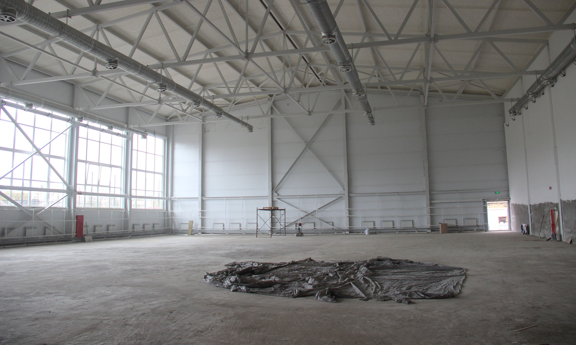 В спорткомплексе практически завершены отделочные работы. Осталось выполнить пол в игровом зале, сейчас здесь укладывают выравнивающий слой, после чего смонтируют специальное покрытие. Уличное благоустройство объекта готово на 99%, строители завершают укладку плитки и формирование газонов, после чего приступят к посадке деревьев. К 15 июня все работы на объекте будут завершены, заверил Губернатора руководитель городского управления капитального строительства.