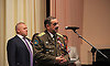 Я хочу сказать вам слова огромной благодарности за тот ваш подвиг, на основании которого мы будем воспитывать не одно поколение детей. В Брянской области мы чтим память о наших предках. Чтим ветеранов и всех, кто отдал свои жизни в годы Великой Отечественной войны. У нас в Брянске и области горят 33 Вечных огня, и никто никогда их не гасил. Мы чтим ребят, отдавших свои жизни уже в наше время. Это Афганистан, Чечня и другие горячие точки. Здесь присутствуют матери Героев. Брянская область — единственная, кто выплачивает родственникам погибших среднюю заработную плату. Потому что, как я говорил, невозможно торговать патриотизмом. Невозможно воспитать подрастающее поколение, когда мы не будем помнить о тех, кто отдал свои жизни за будущее России. Мы сохраняем памятники, обелиски. Мы помним всех, кто отдал жизнь в наше время. Я знаю, что вы побываете на могиле своего сослуживца, Виктора Михайловича Ковалева, командира роты, уроженца нашей земли, он из Клинцов. Мы отдаем дань памяти всем, кто отличился в ратных и трудовых подвигах.