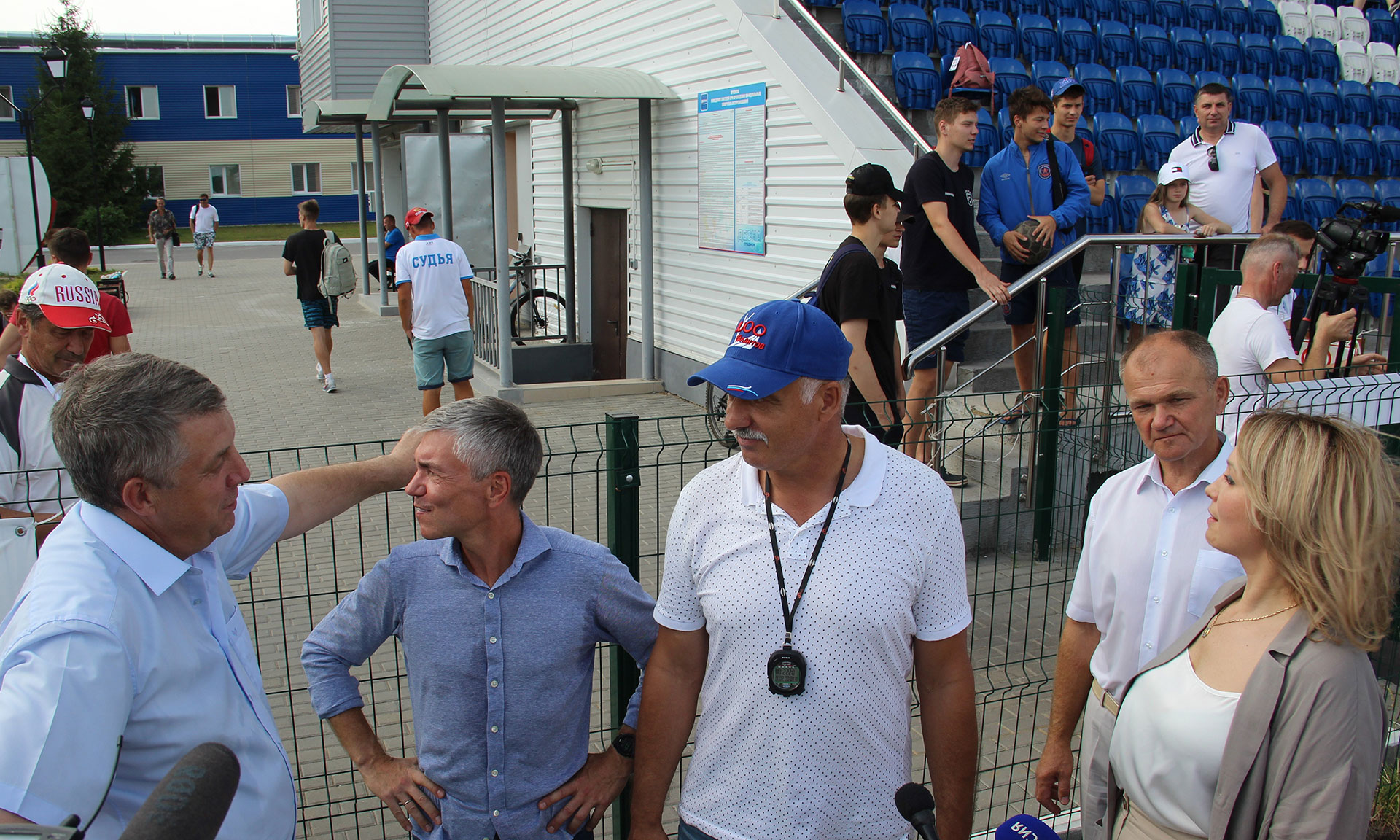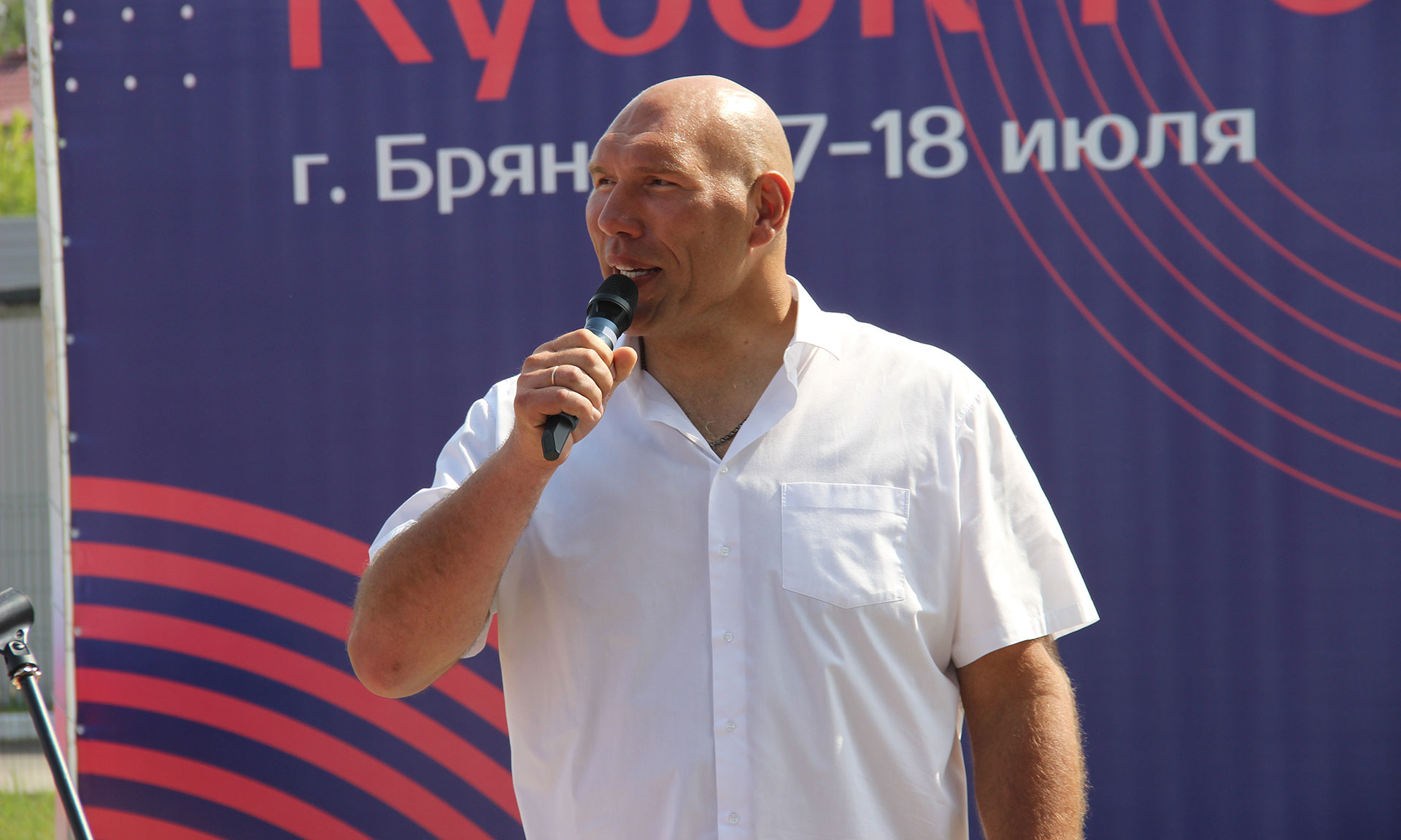 — Уважаемые спортсмены, тренеры, гости, я рад приветствовать вас на нашей героической и радушной Брянской земле. Для нас большая честь принимать соревнования такого уровня. Брянская область гордится своими воспитанниками, прославленными чемпионами — восьмикратным чемпионом мира по самбо Артемом Осипенко, четырехкратным призером Олимпиады, двукратным победителем Кубка мира по лыжным гонкам Александром Большуновым, Олимпийской чемпионкой Ларисой Куркиной и многими, многими другими. Кубок России проходит на стадионе, который был построен сразу после окончания Великой Отечественной войны. Стадион, который принимал спартакиаду России, спартакиаду народов Советского Союза, чемпионат Советского Союза по легкой атлетике, встречу команд сборных Советского Союза и Германии по легкой атлетике и многие другие соревнования.