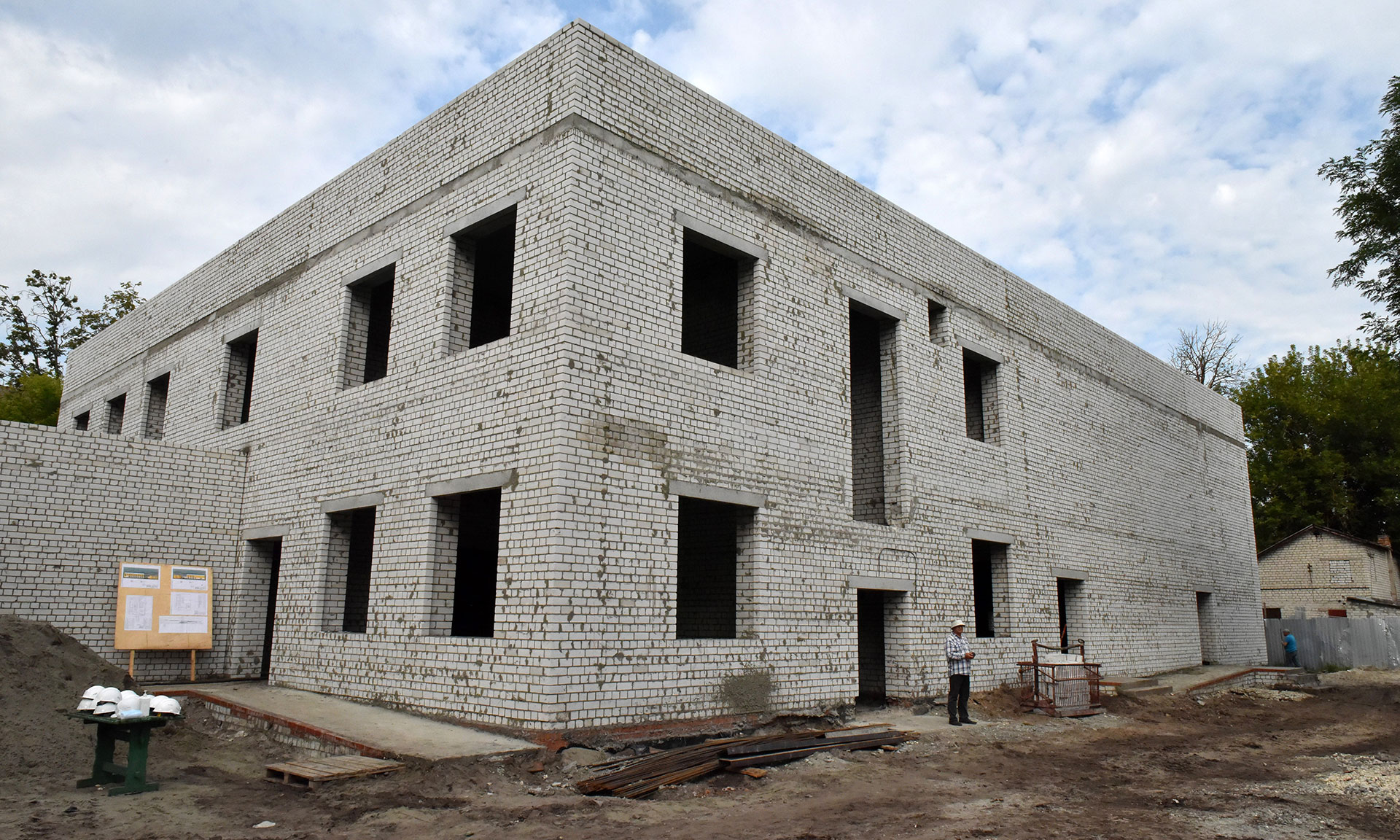 К сегодняшнему дню коробка здания полностью готова. Завершены работы по монтажу плит перекрытия второго этажа, начинается устройство крыши, сегодня на объект доставили оконные блоки. Ведутся работы по устройству кирпичной кладки наружных и внутренних стен второго этажа, стен переходной галереи. Выполняется устройство теплотрассы, приступили к электромонтажным и сантехническим работам.
