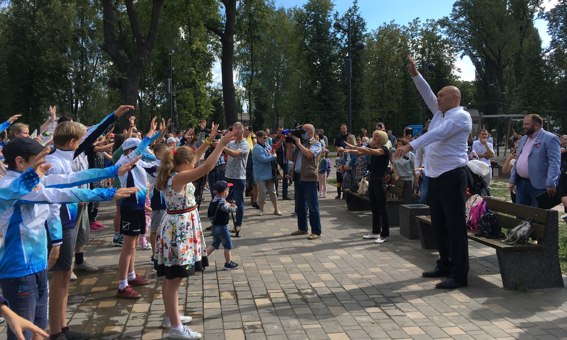 В праздничный день прошла спортивная зарядка от настоящих чемпионов — зарядиться бодростью и хорошим настроением гостям праздника помогали Заслуженный мастер спорта, олимпийская чемпионка по лыжным гонкам Лариса Куркина и чемпион мира в тяжелом весе по версии Всемирной боксерской организации Николай Валуев. На главной сцене для гостей праздника выступали творческие коллективы, а волонтеры раздавали присутствующим флажки и ленточки цветов российского флага.