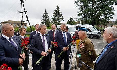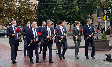 Губернатор Брянской области Александр Богомаз, председатель Брянской областной Думы Валентин Суббот, главный федеральный инспектор по Брянской области Андрей Дьячук, заместитель Губернатора Юрий Филипенко, эксперт тематической площадки ОНФ «Жилье и городская среда» Николай Алексеенко, председатель комитета по промышленности, строительству, связи, предпринимательству и собственности Брянской областной Думы Сергей Антошин, главный врач Брянской городской поликлиники № 1, председатель общественного Совета при главе города Брянска Ирина Агафонова отдали дань памяти героям Великой Отечественной войны — возложили цветы к мемориалу «Воинское кладбище 300 советских воинов, погибших в 1943 году в боях с немецко-фашистскими захватчиками».