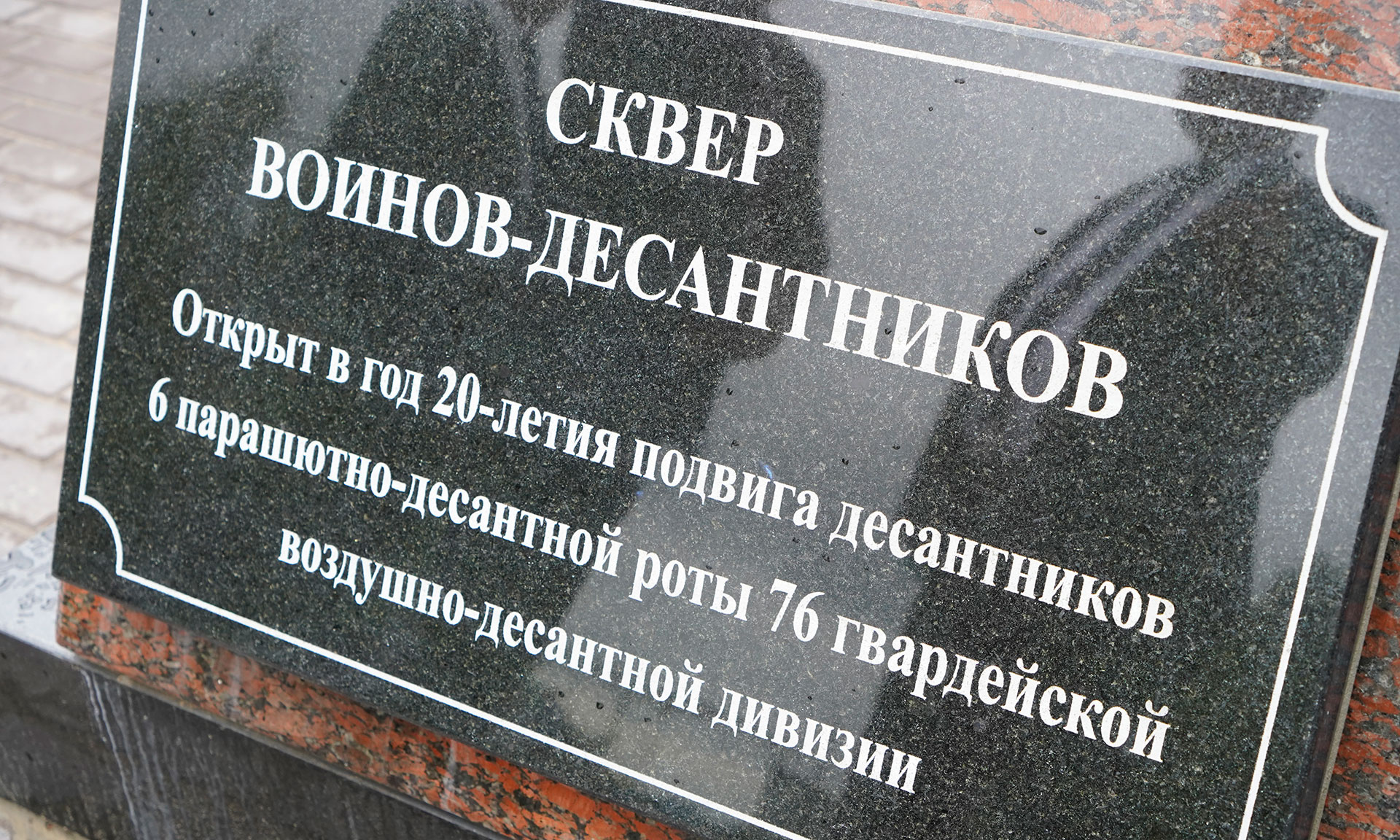 Еще одно знаковое для суражан место — Сквер десантников, открытый совсем недавно, 2 августа 2021 года, в День ВДВ. В 2020 году в западной части города на месте пустыря было принято решение благоустройства территории и создание сквера, увековечивающего память подвига 6 роты 104-го полка 76-й Псковской дивизии ВДВ. По результатам регионального конкурсного отбора программ инициативного бюджетирования был реализован проект на сумму 2,3 млн рублей.