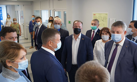 Вместе с Губернатором с работой медицинского учреждения ознакомились председатель Брянской областной Думы Валентин Суббот, заместитель Губернатора Юрий Филипенко, врио заместителя Губернатора Андрей Бардуков, председатель комитета по промышленности, строительству, связи, предпринимательству и собственности Брянской областной Думы Сергей Антошин, эксперт тематической площадки Общероссийского народного фронта «Жилье и городская среда» Николай Алексеенко, главный врач Брянской городской поликлиники № 1, председатель общественного Совета при главе города Брянска Ирина Агафонова, директор департамента здравоохранения Брянской области Сергей Галаганов, директор департамента культуры Брянской области Елена Кривцова.