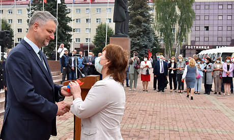 — Сегодня, в праздничный день, День знаний, вручили нашим образовательным учреждениям 20 новых автобусов, которые пойдут в школы области. Сегодня в автопарке образовательных учреждений 305 автобусов. Всего за последние три года мы закупили 142 автобуса за счет областного бюджета, остальные — за счет федерального. Еще 20 автобусов для школ, приобретенные за средства областного бюджета, будут вовремя, безопасно, в любую погоду доставлять наших школьников в учебные классы.