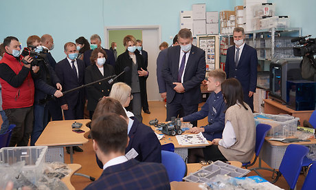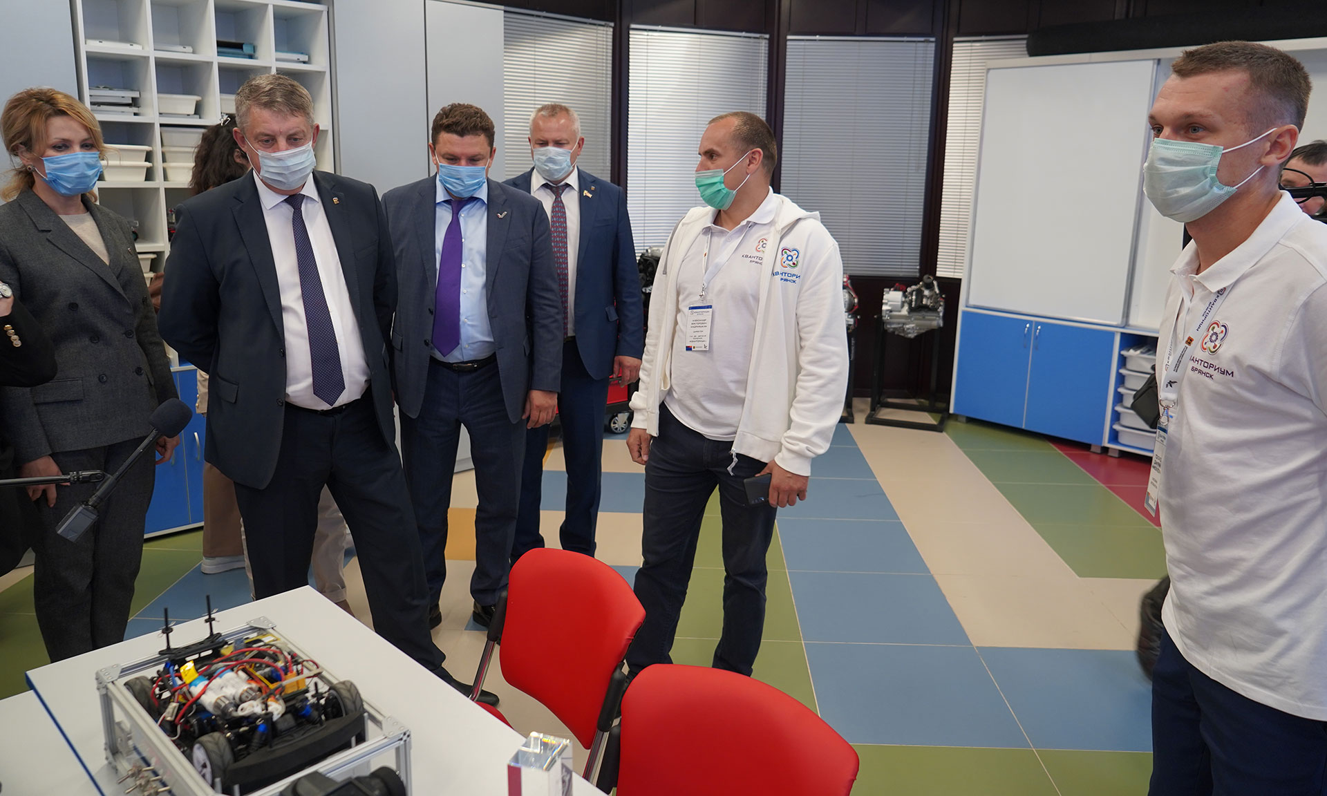 Продолжается работа и по созданию учреждений дополнительного образования. Александр Богомаз пообщался с педагогами и ребятами, посещающими детский технопарк «Кванториум». Он был открыт в декабре 2019 года. На реализацию этого образовательного проекта бюджет направил 191,5 млн рублей, из которых 103 млн рублей — на закупку высокотехнологичного оборудования и материалов.