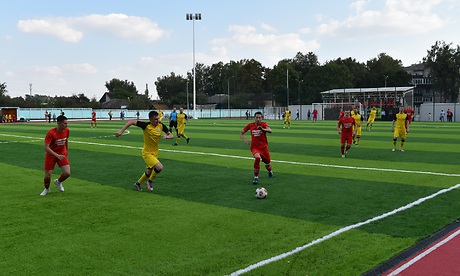 Затем на поле были приглашены команды футболистов, которым дано почётное право сыграть первый матч на обновлённом стадионе. Это команды «Заря» Стародуба и команда Брянского государственного аграрного университета (Кокино).