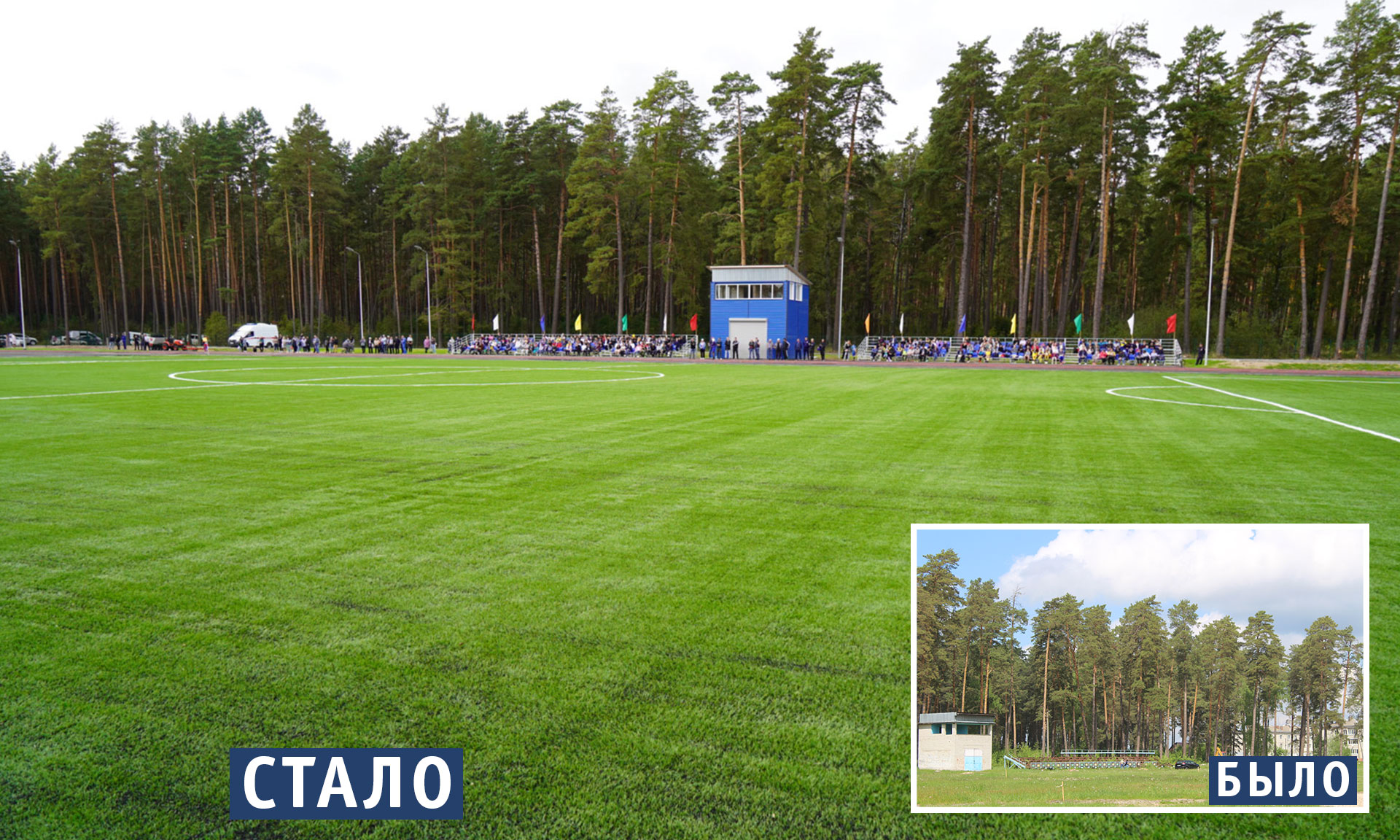 — Конечно, это очень хорошо, что у нас теперь есть такой стадион. Намного проще будет отрабатывать технические навыки: поле ровное, траектория мяча предсказуемая. Очень хорошо, что вокруг сосновый бор. Можно использовать его территорию для кроссовой подготовки, задействовать подъёмы, спуски, разнообразить тренировочный процесс. Важно, что есть хорошие раздевалки, где можно в нормальных условиях переодеться, принять душ. Условия для занятий спортом здесь, конечно, стали намного лучше.