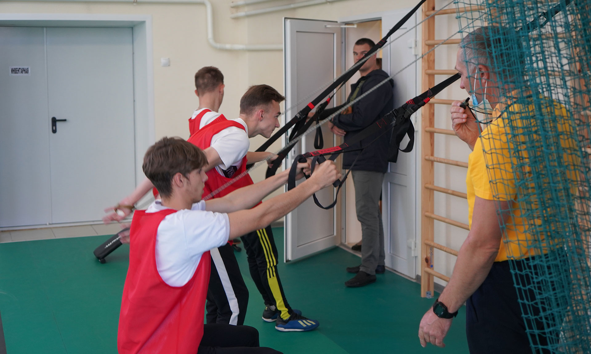 Директор колледжа Николай Макаркин провел гостей по обновленному спортзалу, показал тренажерный зал.