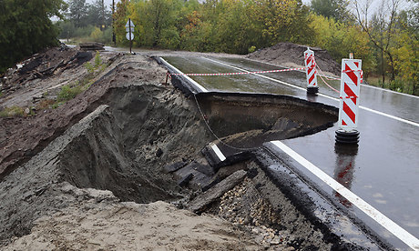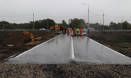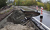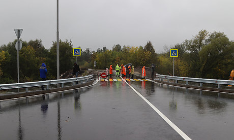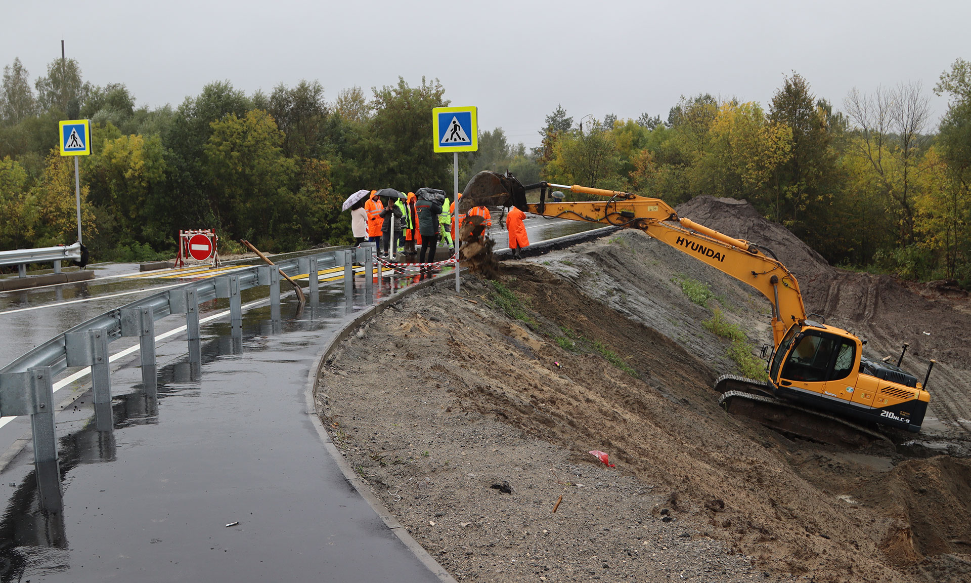 По данным Брянского гидрометцентра, только с 17 по 19 сентября в Брянске выпало 80 мм осадков, что составляет 145% от месячной нормы. От непрекращающихся дождей пострадал участок дороги, которая еще не сдана в эксплуатацию.