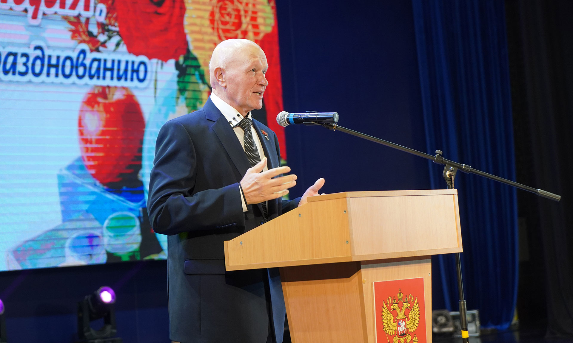 — Разрешите мне от имени председателя Думы Валентина Владимировича Суббота, депутатского корпуса поздравить вас с этим торжественным событием, самым лучшим праздником — Днём учителя. Мы вас очень ценим и уважаем. Спасибо вам за ваш труд!