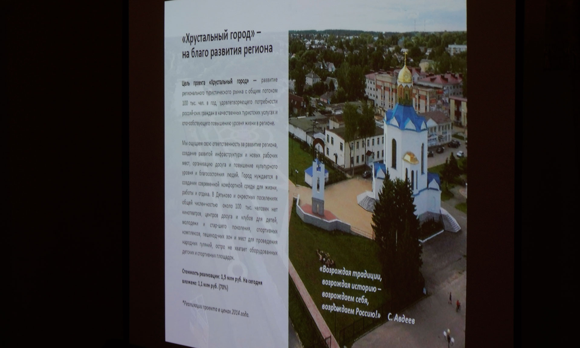 Отдельно скажу о нашем Хрустальном заводе, который, по сути, остался единственным в России, есть еще небольшие ремесленные группы. Мы отмечаем развитие предприятия, и это видно по результатам нашего участия в международных форумах, в частности, в Санкт-Петербургском международном экономическом форуме, в выставке в Арабских Эмиратах. Появляется новая грань в облике нашего города, к примеру, Хрустальный иконостас — это то, что уже сейчас притягивает людей, туристов, мы возрождаем историю нашего города, и это самое ценное. В России нет больше такого, и наша задача — сохранить уникальное производство и его историю!