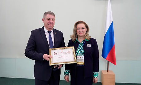 Уважаемая Анна Витальевна! К юбилею Фонда мы приготовили подарок, чтобы у вашего просветительского общества на память о посещении Брянской земли осталось вот это рукотворное чудо брянских мастеров, названное ими «Град Китеж». Мне как Губернатору очень приятно, что вы по достоинству оценили работу наших мастеров, которые работают на данном предприятии и сегодня продолжают те славные традиции, которые были заложены на Брянской земле более ста лет назад.