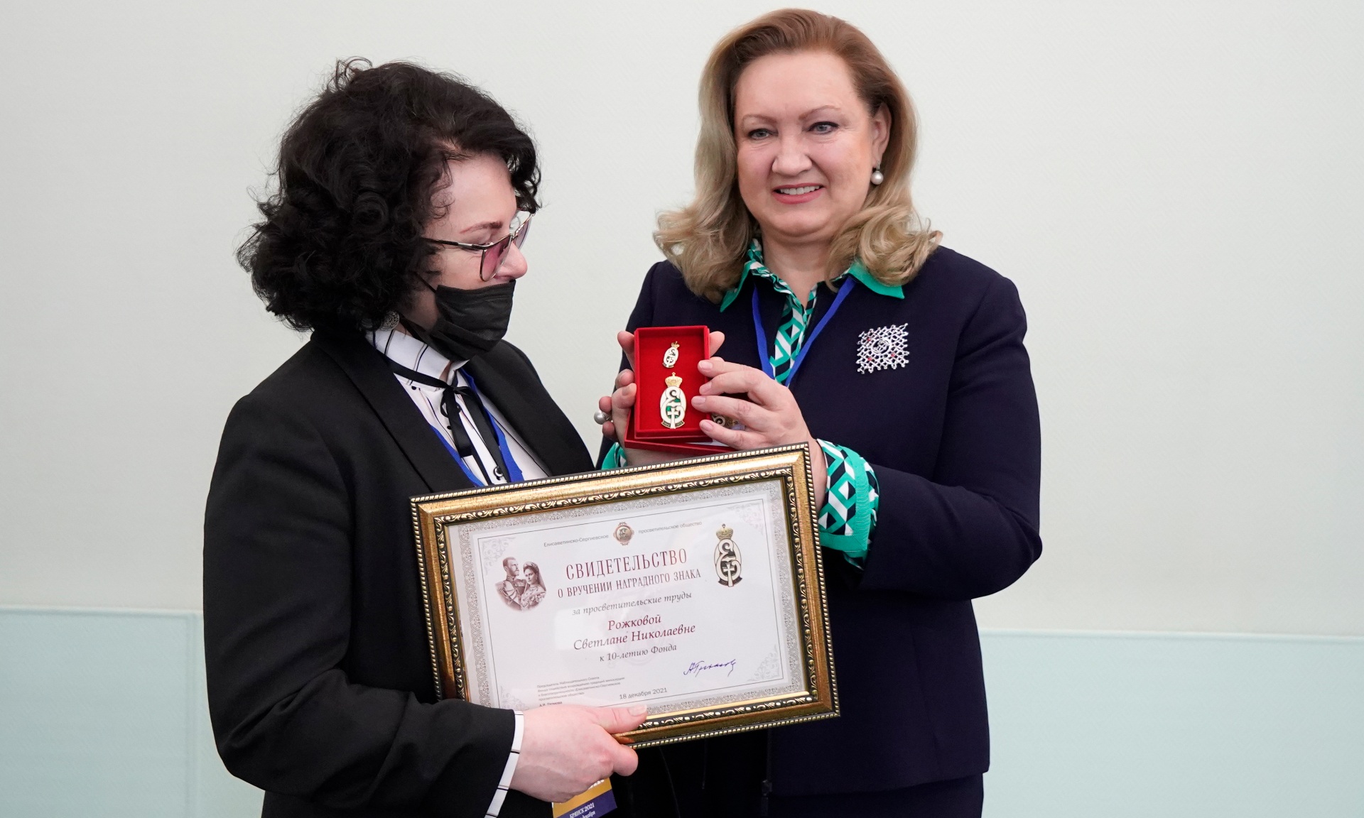 К 10-летию Фонда «Елисаветинско-Сергиевское просветительское общество» учрежден знак святой преподобномученицы Великой Княгини Елисаветы Феодоровны и Великого Князя Сергея Александровича. Председатель Наблюдательного Совета Фонда «Елисаветинско-Сергиевское просветительское общество» Анна Громова наградила юбилейным знаком за просветительские труды заместителя Председателя Правительства Чеченской Республики Джамбулата Умарова, Губернатора Брянской области Александра Васильевича Богомаза, митрополита Брянского и Севского Александра, директора департамента культуры Брянской области Елену Кривцову.