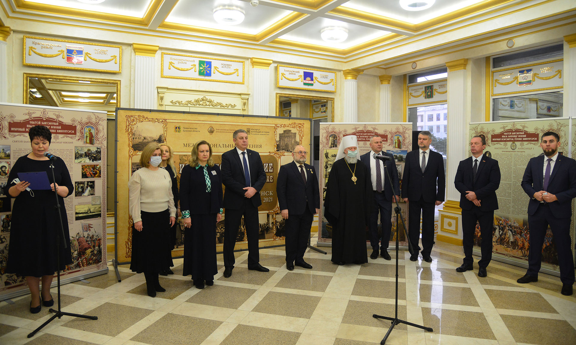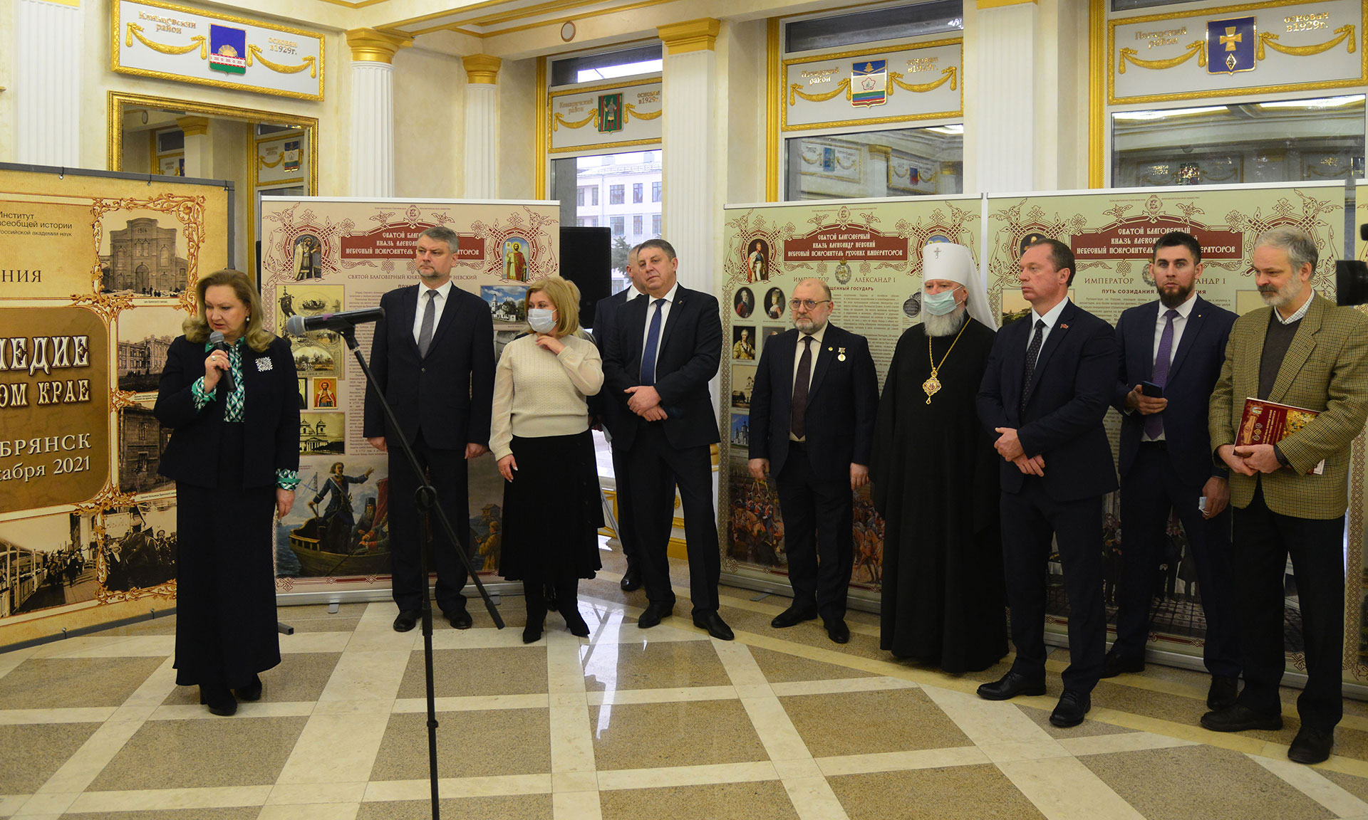 — Уважаемая Анна Витальевна, уважаемый Джамбулат Вахидович, дорогой Владыка Александр, уважаемые участники выставки! Мне как Губернатору очень приятно принимать участие в открытии на нашей Брянской земле выставки, посвященной великому воину и государственному деятелю, князю Александру Невскому. Я бы хотел сказать слова огромной благодарности Вам, Анна Витальевна, за Вашу инициативу провести данную выставку, с которой в дальнейшем могут познакомиться все жители области, у нас в Брянске.