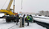 В основании моста строят 12 опор, состоящих из 72 стоек. Уже готово более 50 стоек. В общей сложности на 12 опорах разместятся 198 железобетонных балок. Вес каждой из них свыше 35 тонн, длина — 24 м. Сейчас на мосту уложено уже более 65 балок. К границам моста дорожники вплотную подвели земляную насыпь. Она представляет собой ответвление протяженностью около 700 м, которое соединит инженерное сооружение с разворотным кольцом на новой дороге-защитной дамбе.