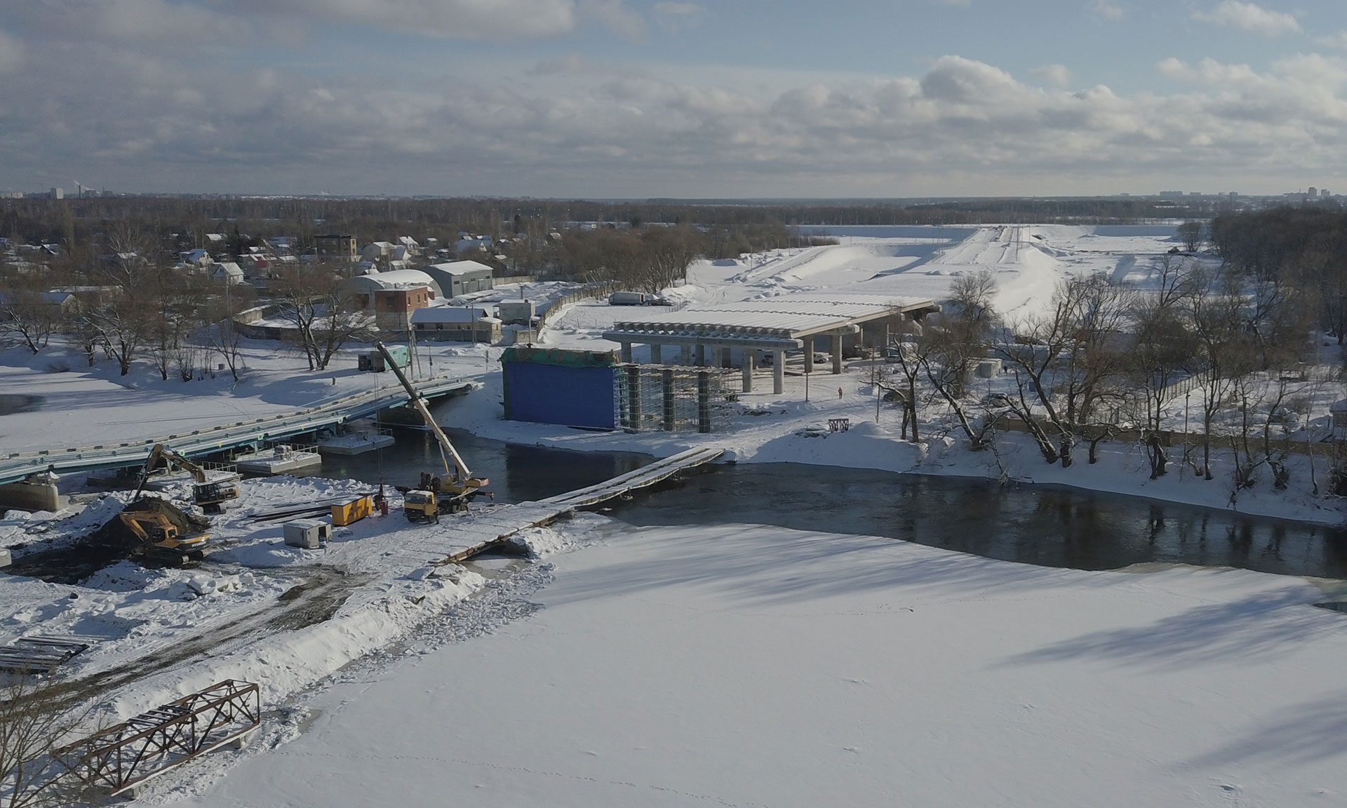 В числе первоочередных задач — работа в русле реки Десны. По проекту прямо в воде будут располагаться несколько опор нового моста. К концу января здесь планируют начать забивать первые сваи. Пока же мостостроители проводят подготовку к этому ответственному этапу работ.
