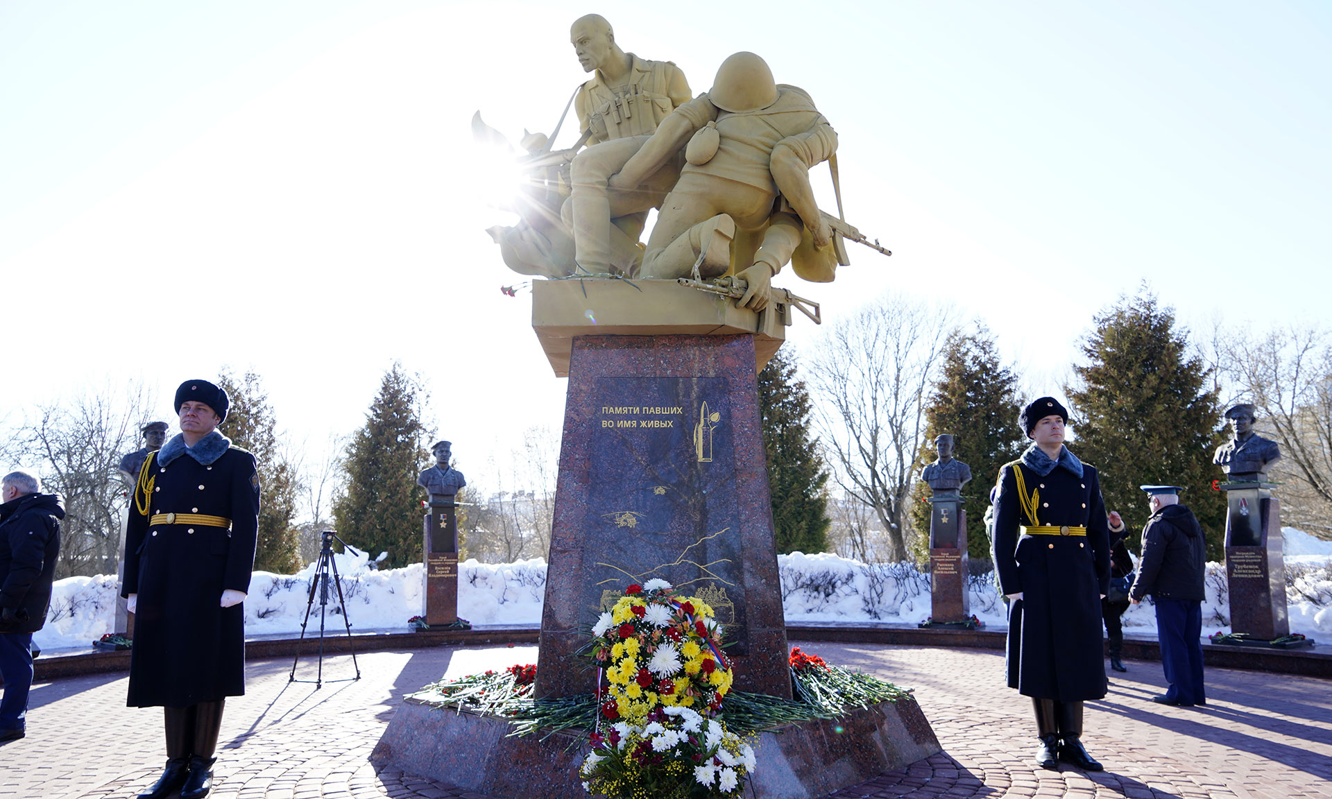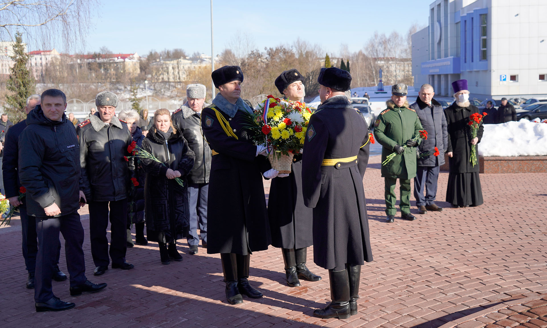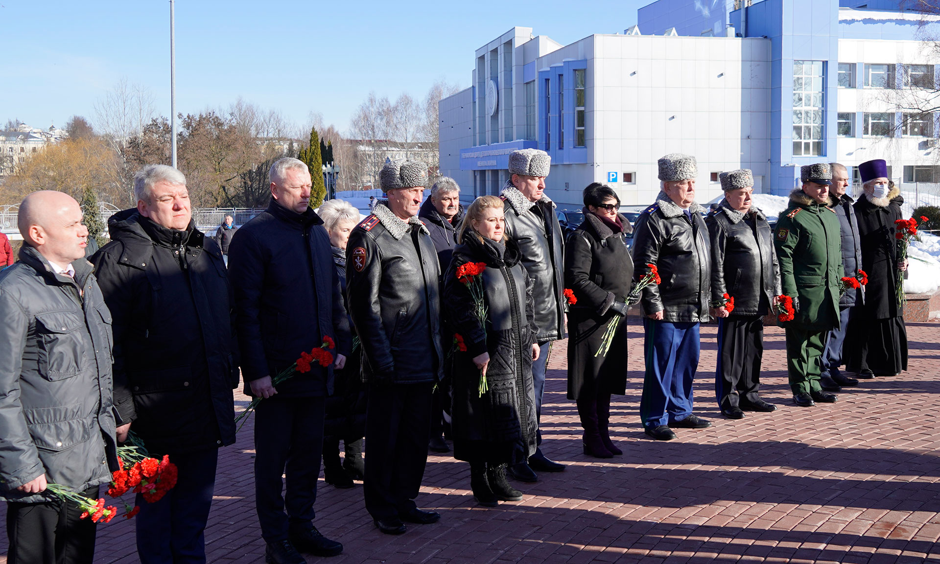 В знак памяти и славы павшим воинам корзину и цветы к памятнику «Круговая оборона» и на Аллее Славы возложили Губернатор Брянской области Александр Богомаз, председатель Брянской областной Думы Валентин Суббот, главный федеральный инспектор по Брянской области Андрей Дьячук, Митрополит Брянский и Севский Александр, Герой Российской Федерации, председатель постоянного комитета по молодежной политике, физической культуре и спорту Брянской областной Думы Александр Постоялко, исполняющая обязанности председателя Брянского областного суда Наталья Третьякова, председатель Арбитражного суда Брянской области Евгений Егоров, прокурор Брянской области Александр Войтович, начальник пограничного управления ФСБ России по Брянской области Сергей Митюшин, начальник управления ФСИН России по Брянской области Сергей Герасимов, руководитель управления ФНС России по Брянской области Андрей Маркелов, военный комиссар Брянской области Марат Урмансов, заместитель председателя постоянного комитета Брянской областной Думы по молодежной политике, физической культуре и спорту, руководитель ветеранской организации Вячеслав Губанов, ветераны войны в Афганистане, родные и близкие.