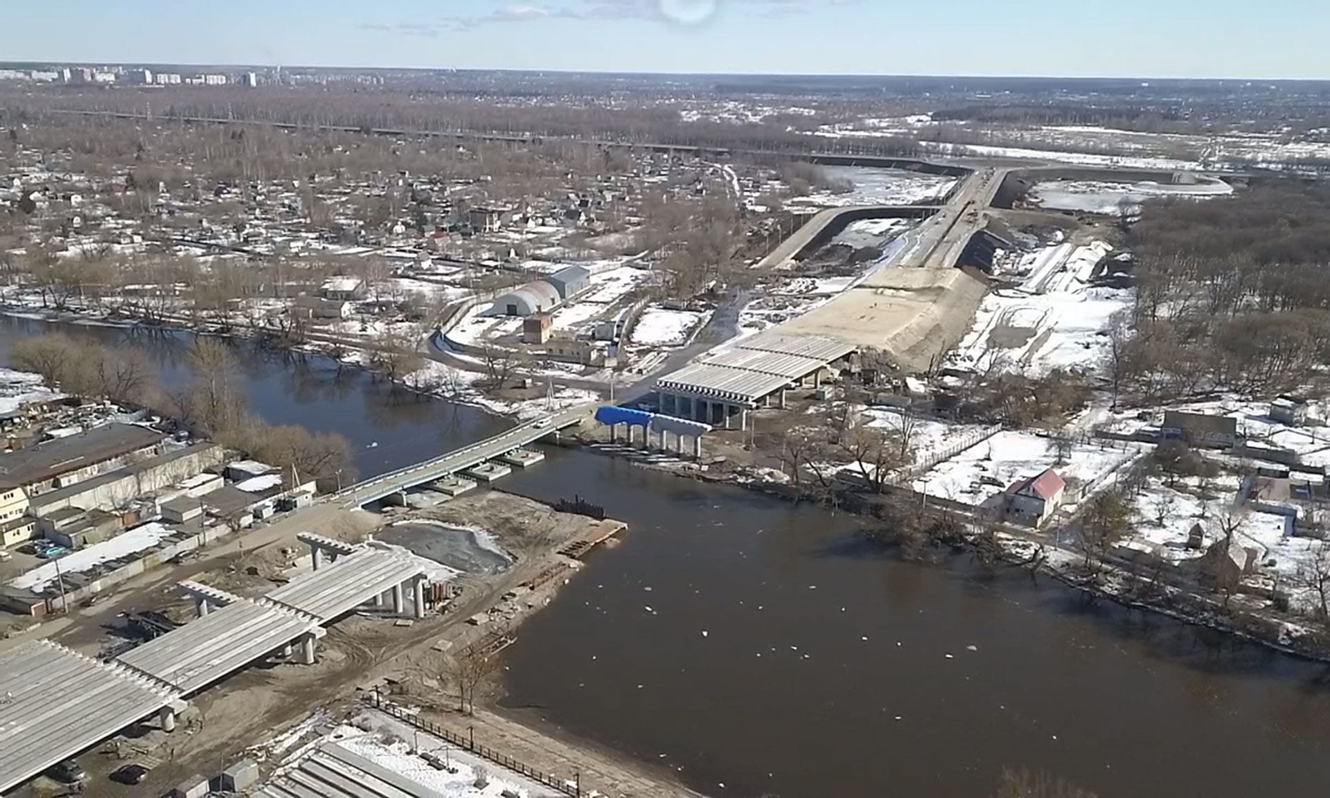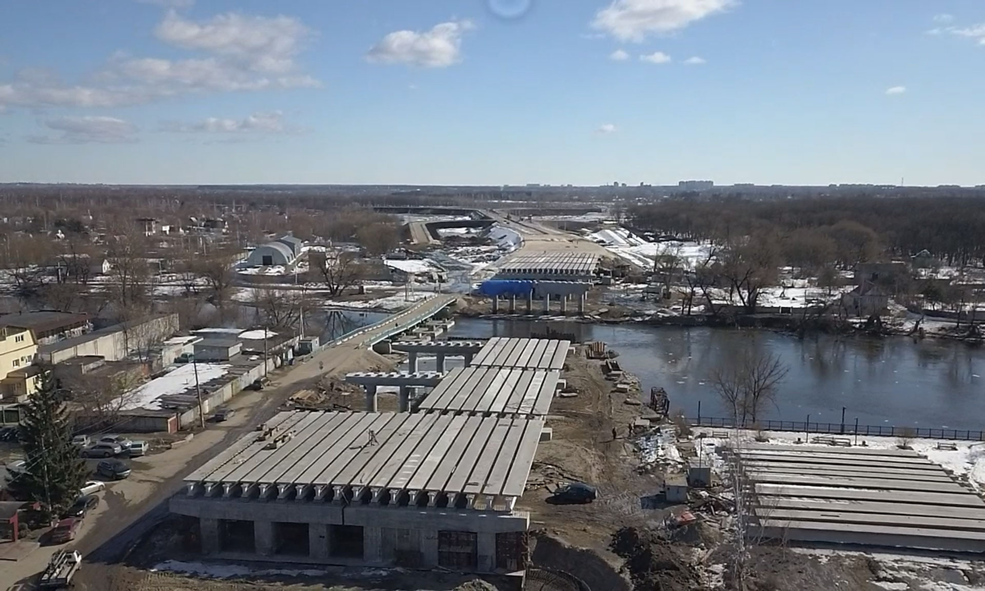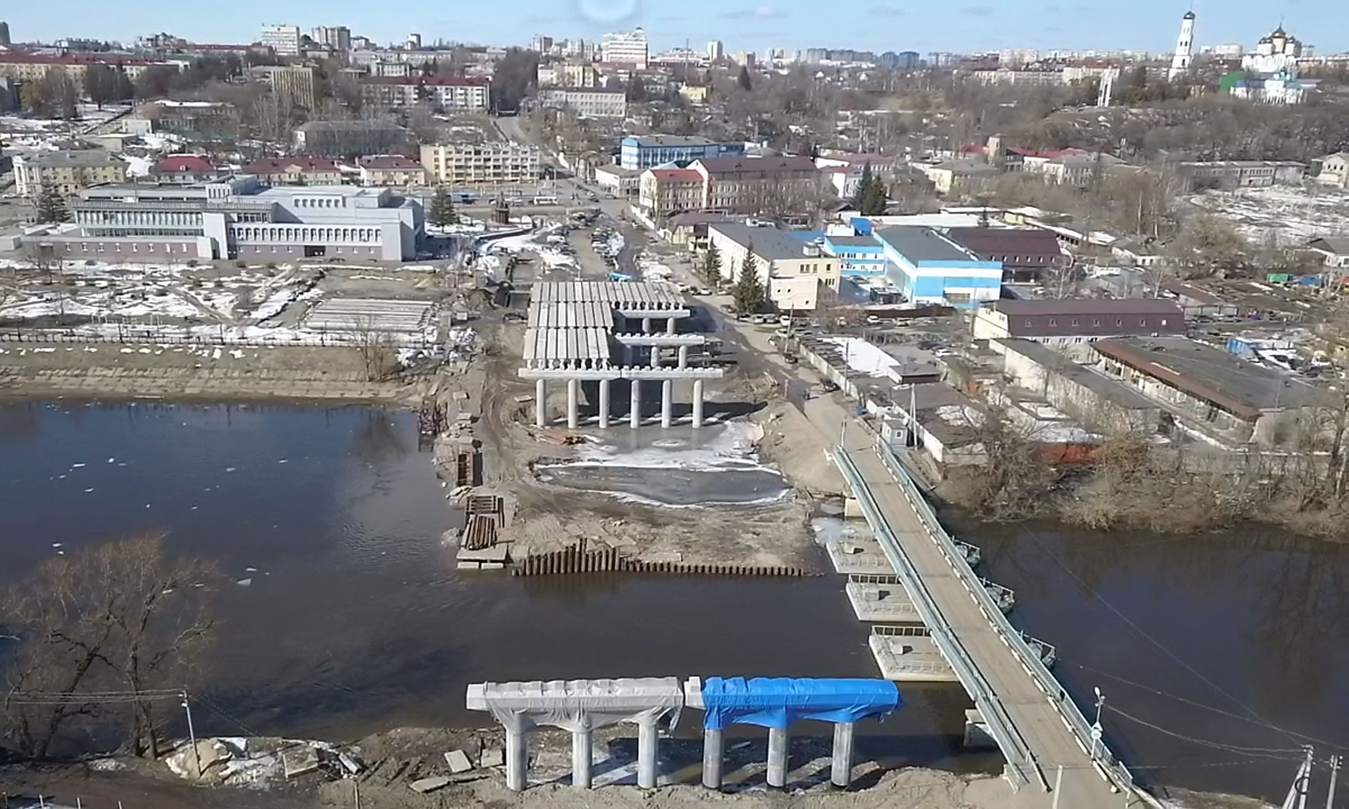 Строительство моста на Набережной и 700-метрового подъезда к нему, в рамках второго этапа «Строительство автомобильной дороги — защитной дамбы «Брянск-I — Брянск-II» идет согласно графику.